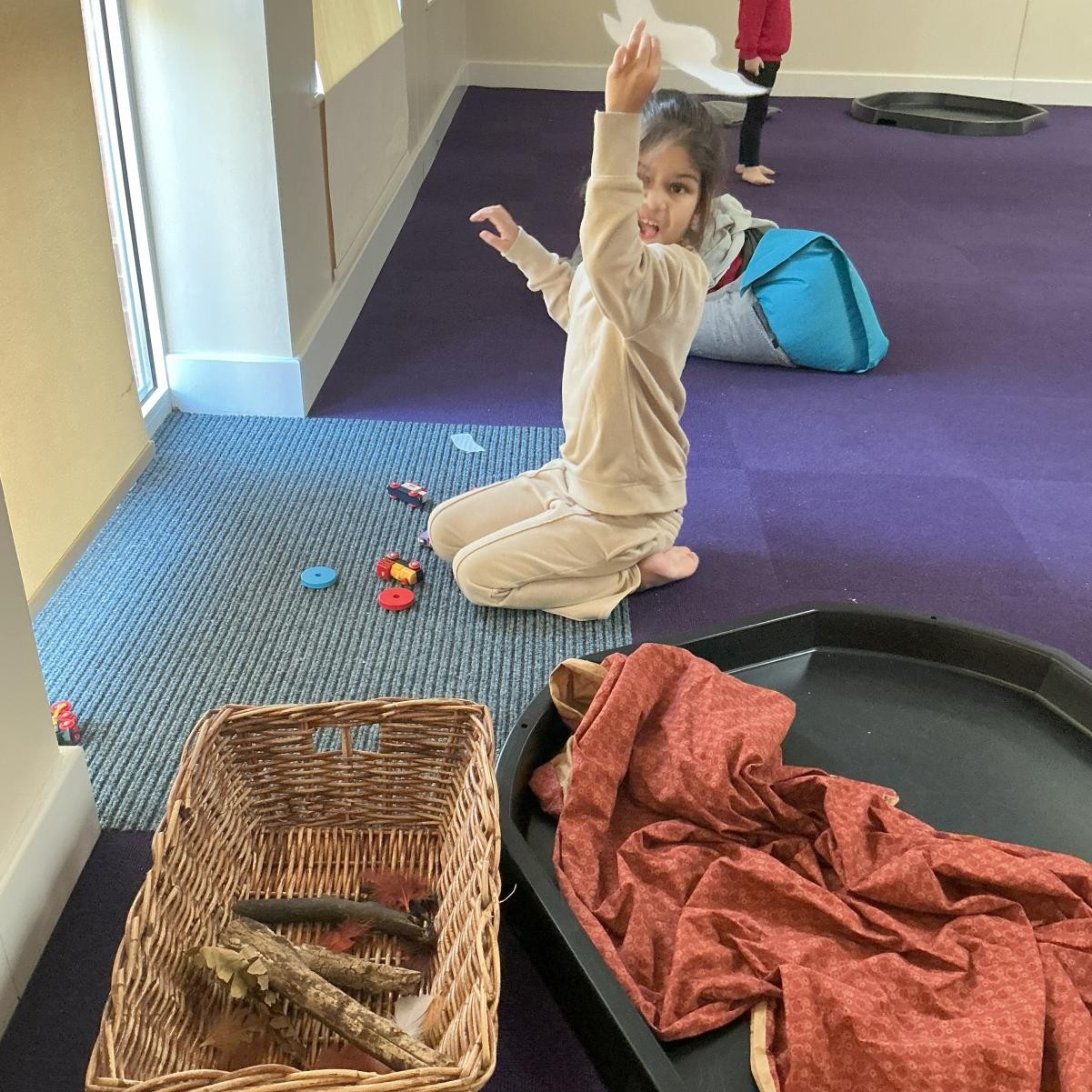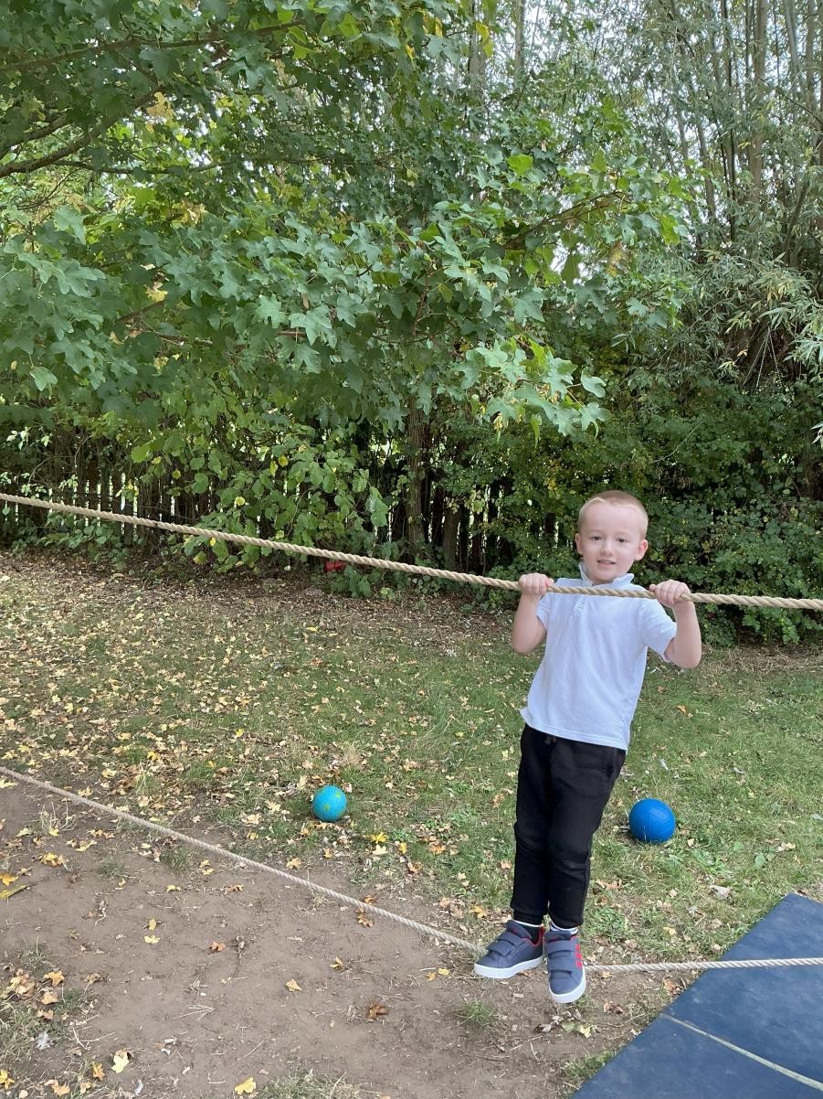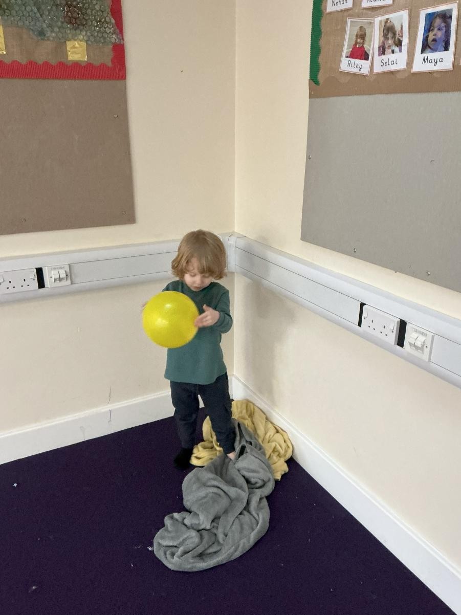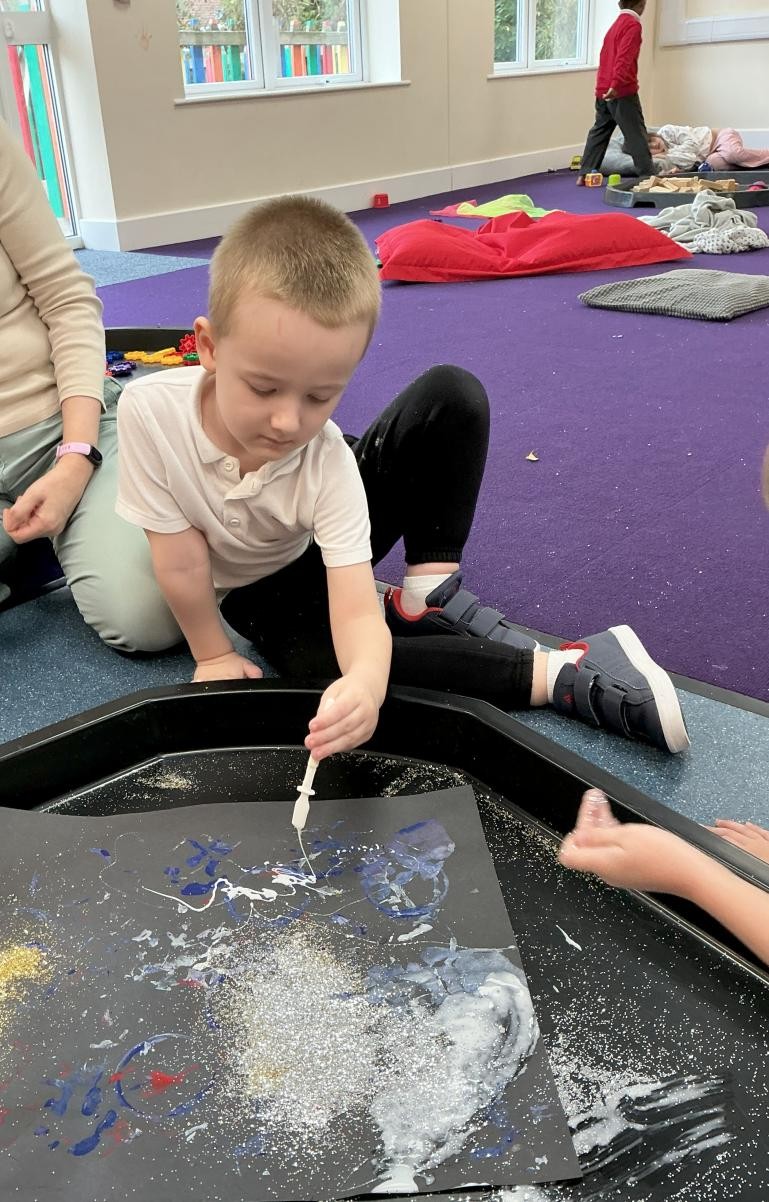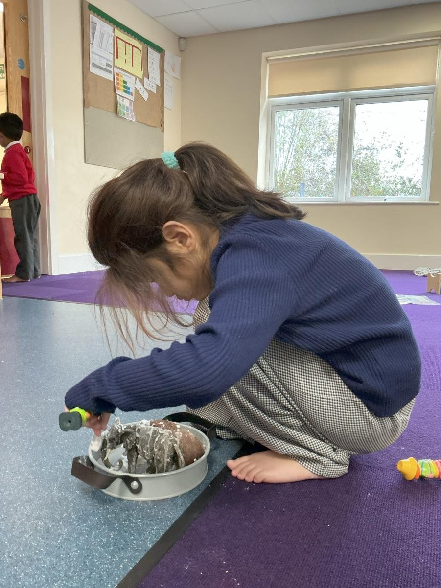 We all had fun foot printing with orange paint and creating green handprints, which are going to be cut out to create carrots for a display at the harvest festival in Ely cathedral. We have also explored cooked spaghetti and painting primary colours using large paint brushes during messy play sessions this week.