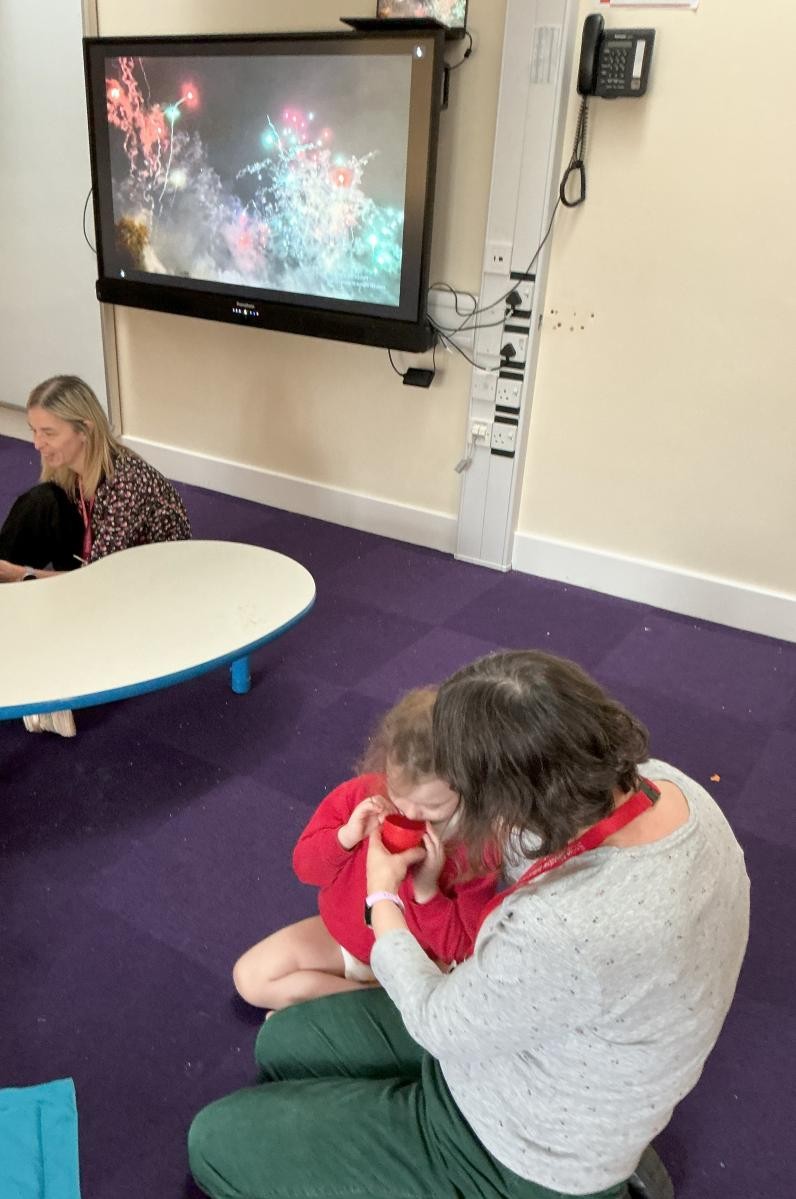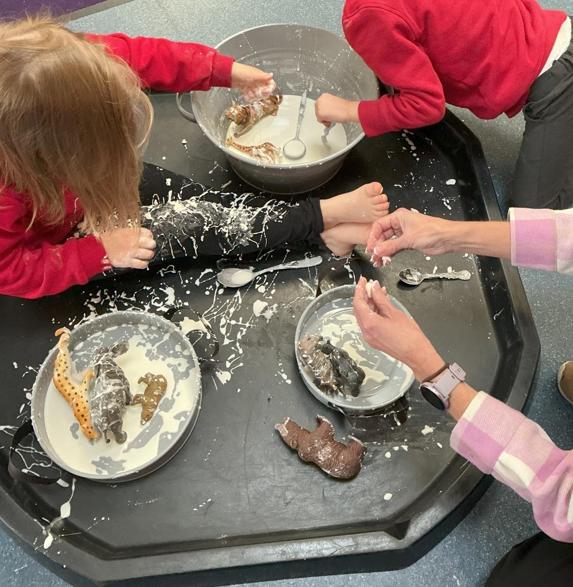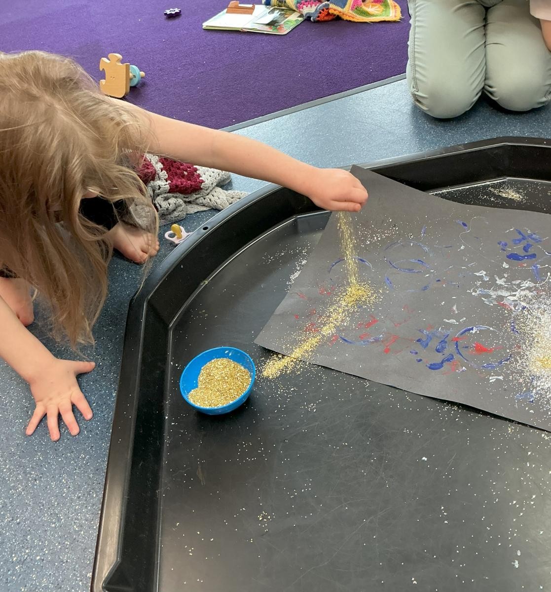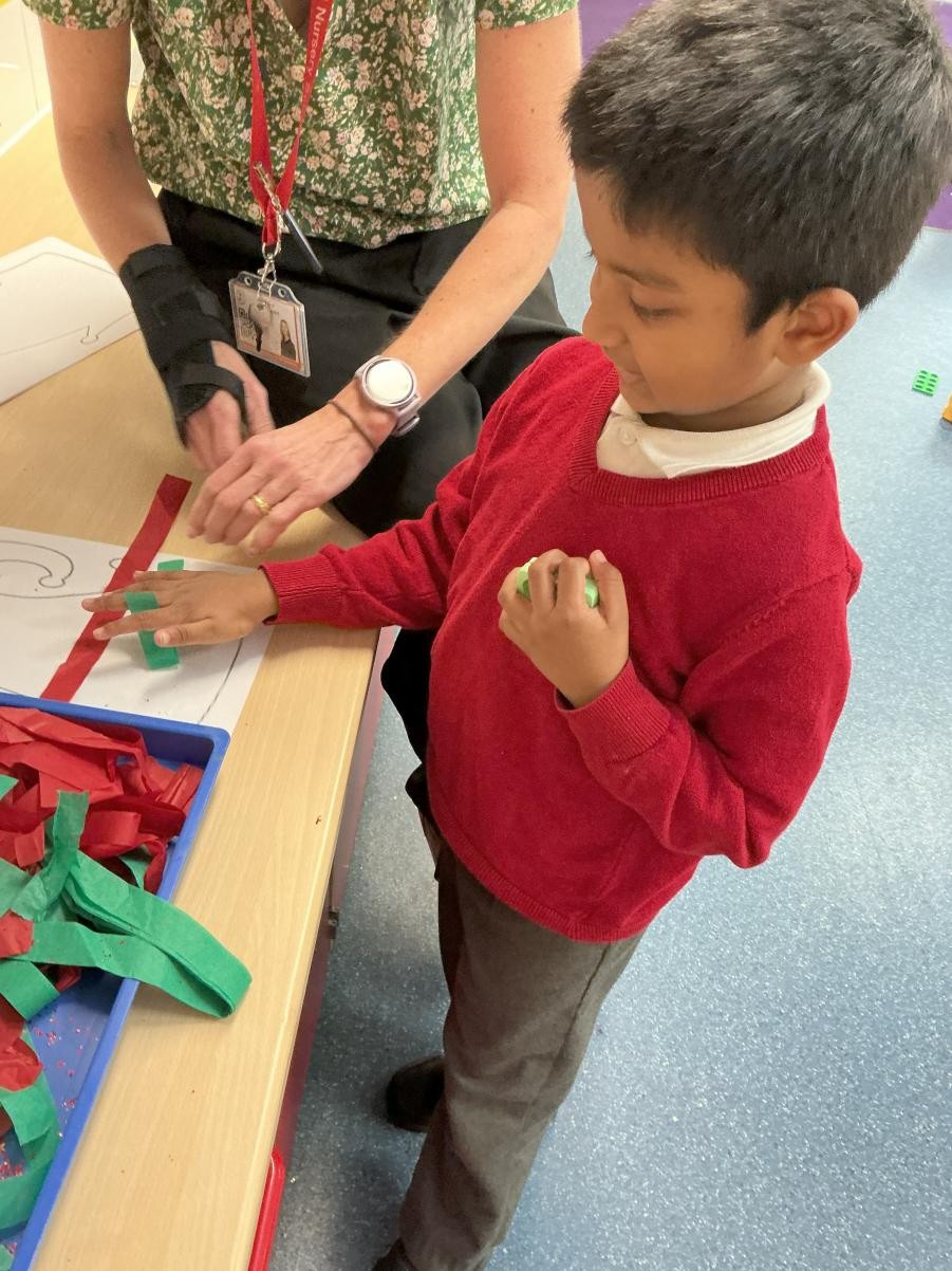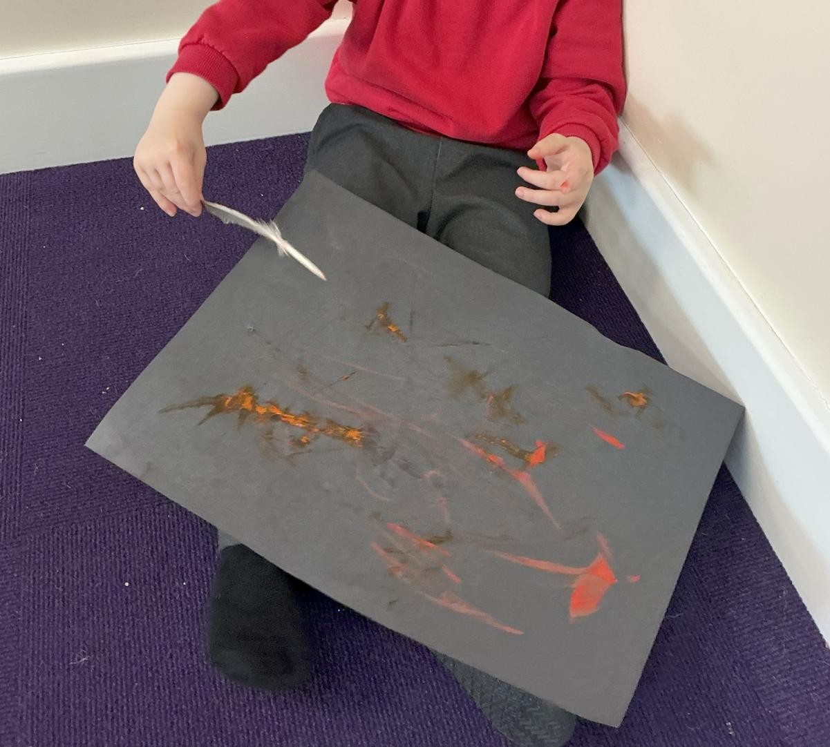 We all had fun foot printing with orange paint and creating green handprints, which are going to be cut out to create carrots for a display at the harvest festival in Ely cathedral. We have also explored cooked spaghetti and painting primary colours using large paint brushes during messy play sessions this week.