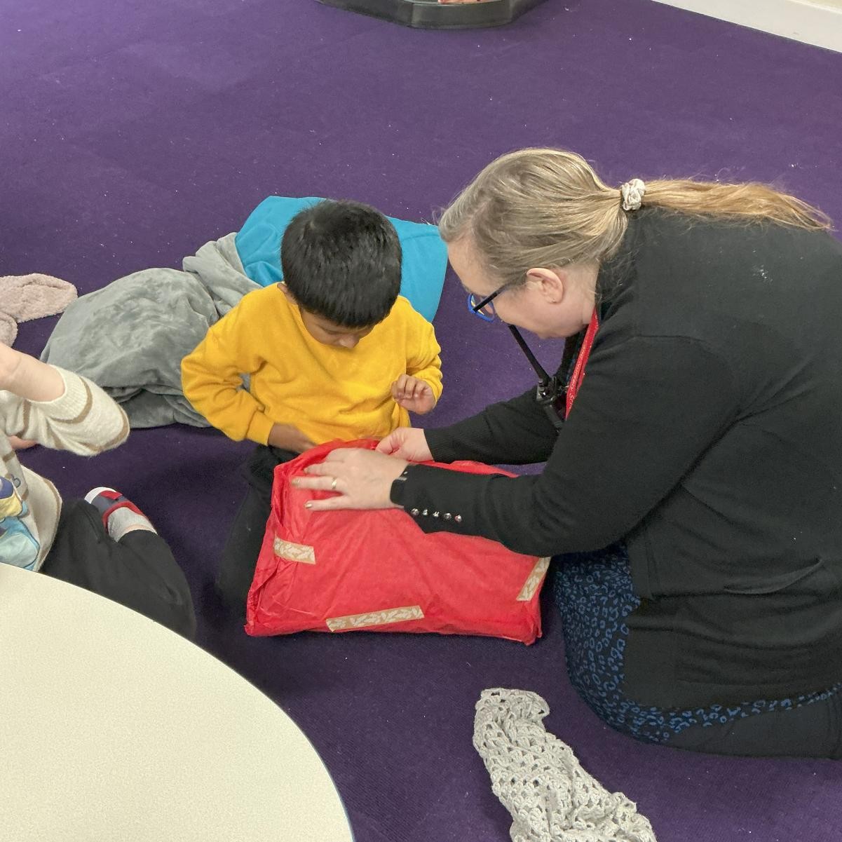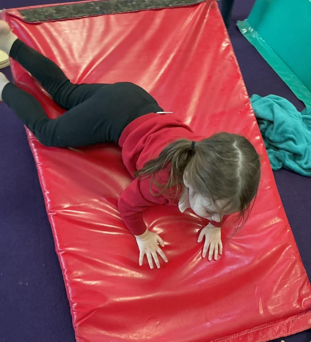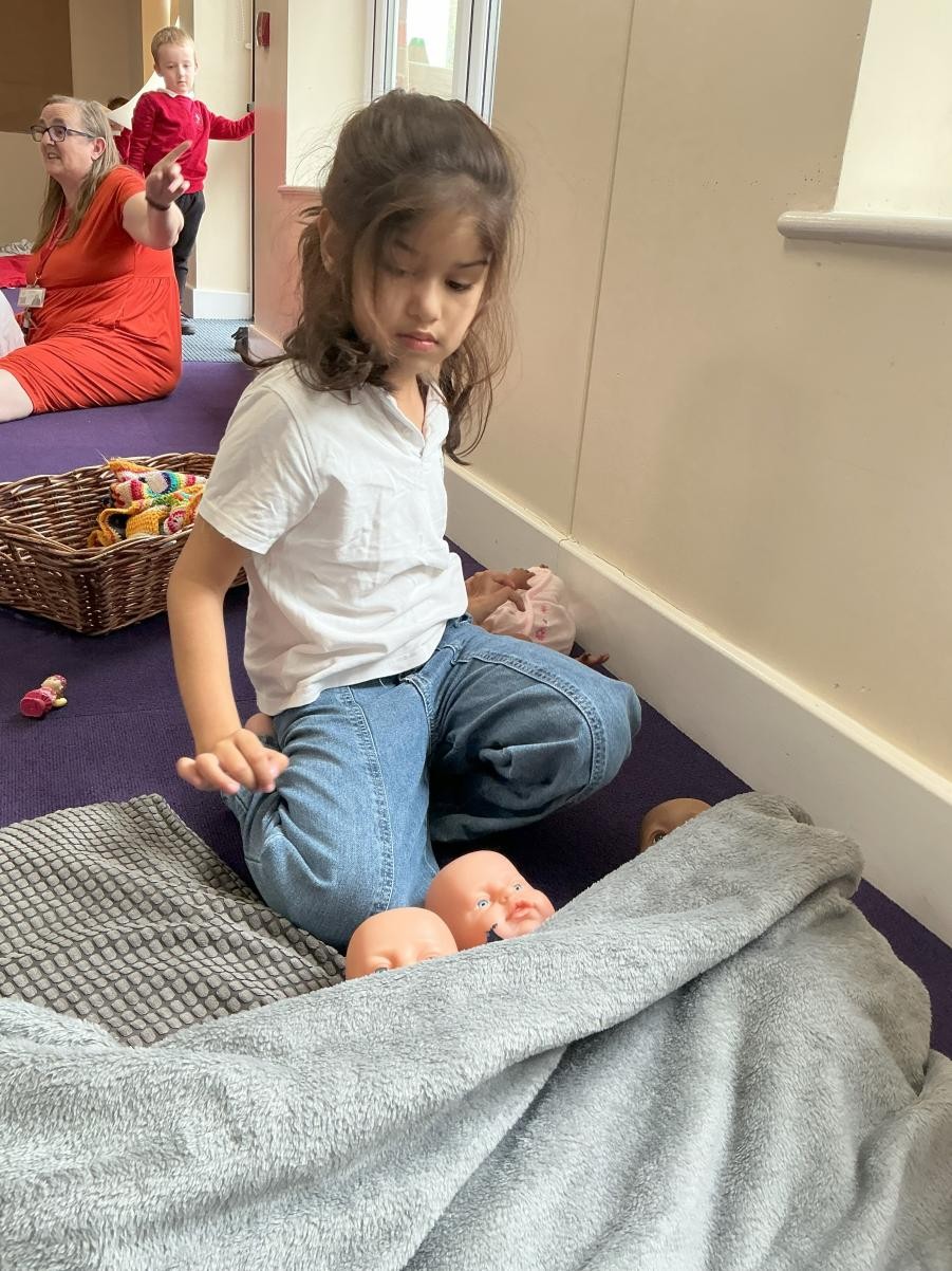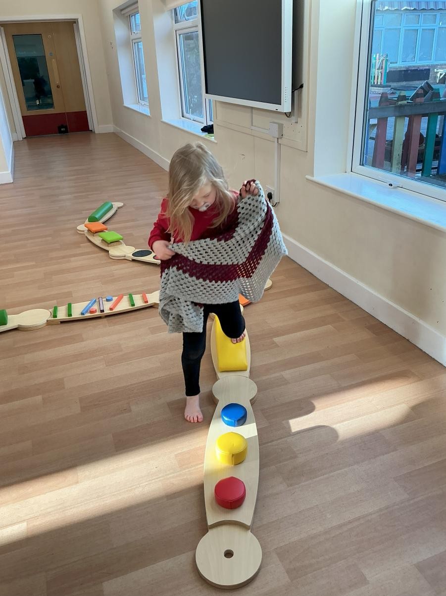 This week we have been learning more about parts of our body and what they can do. We listened to a story called 'Eyes, Nose, Fingers, Toes', where we counted fingers and toes, blinked our eyes and pointed to our backs and tummies.