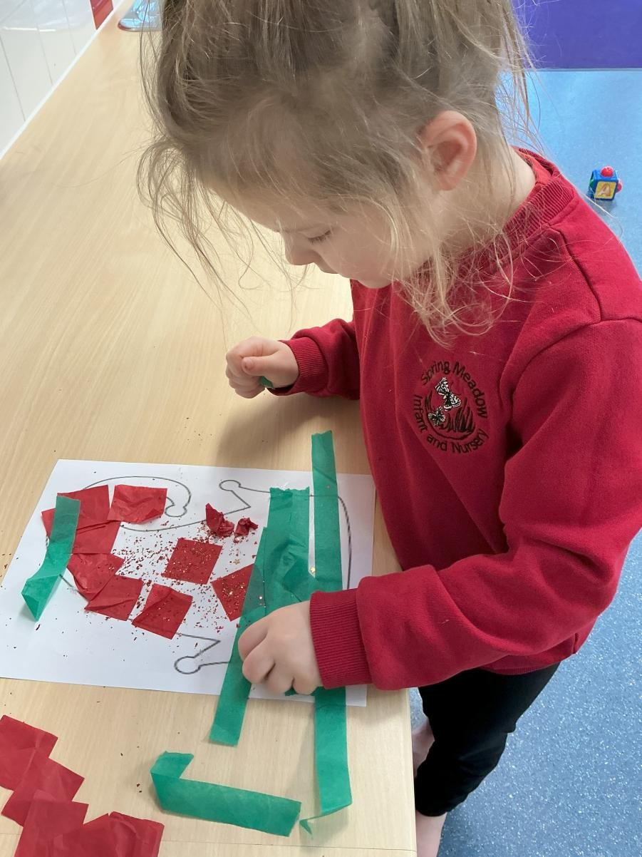 We looked at pictures of eyes, noses, ears and mouths and chose some to stick on pictures of faces.