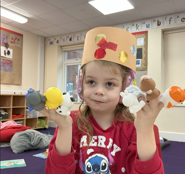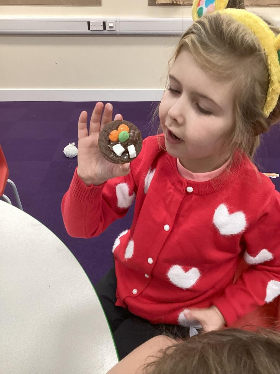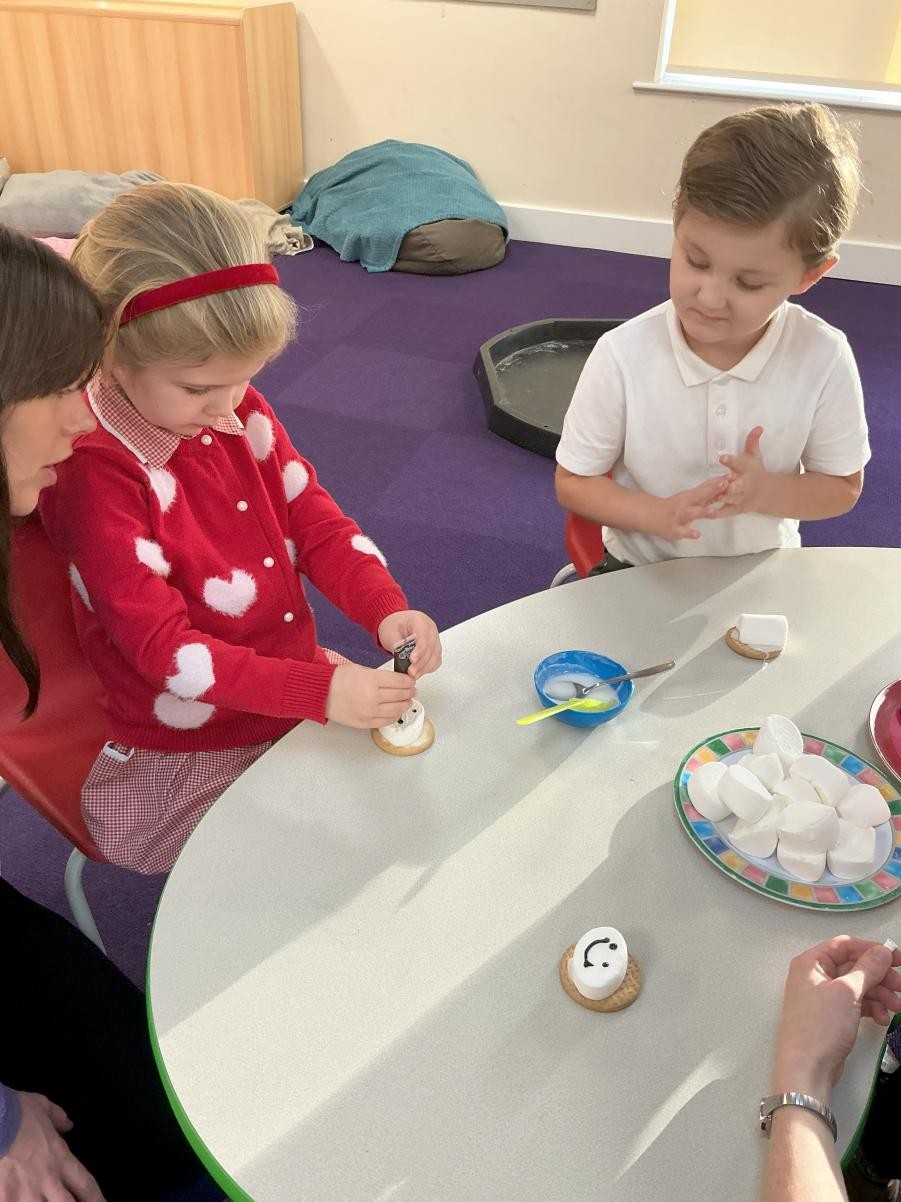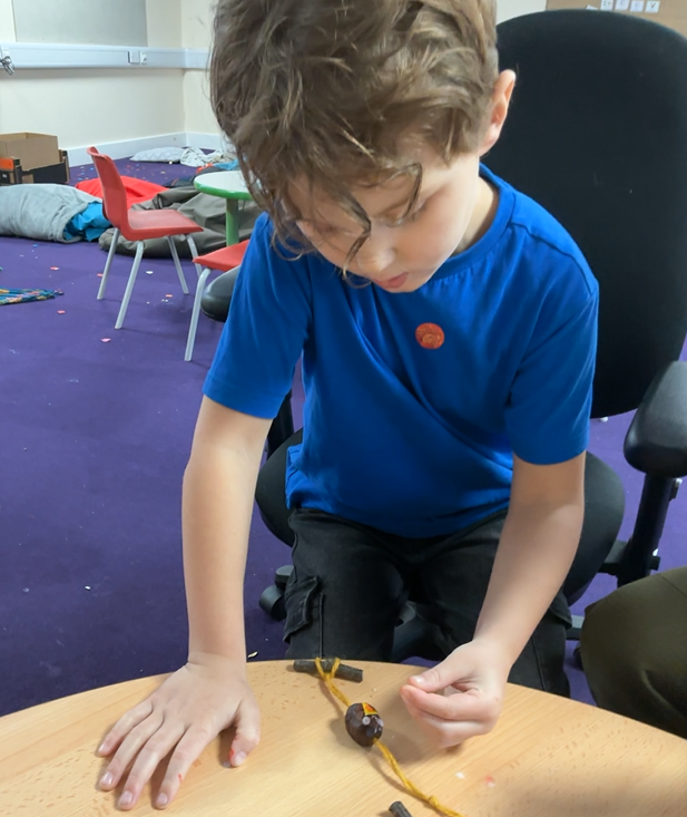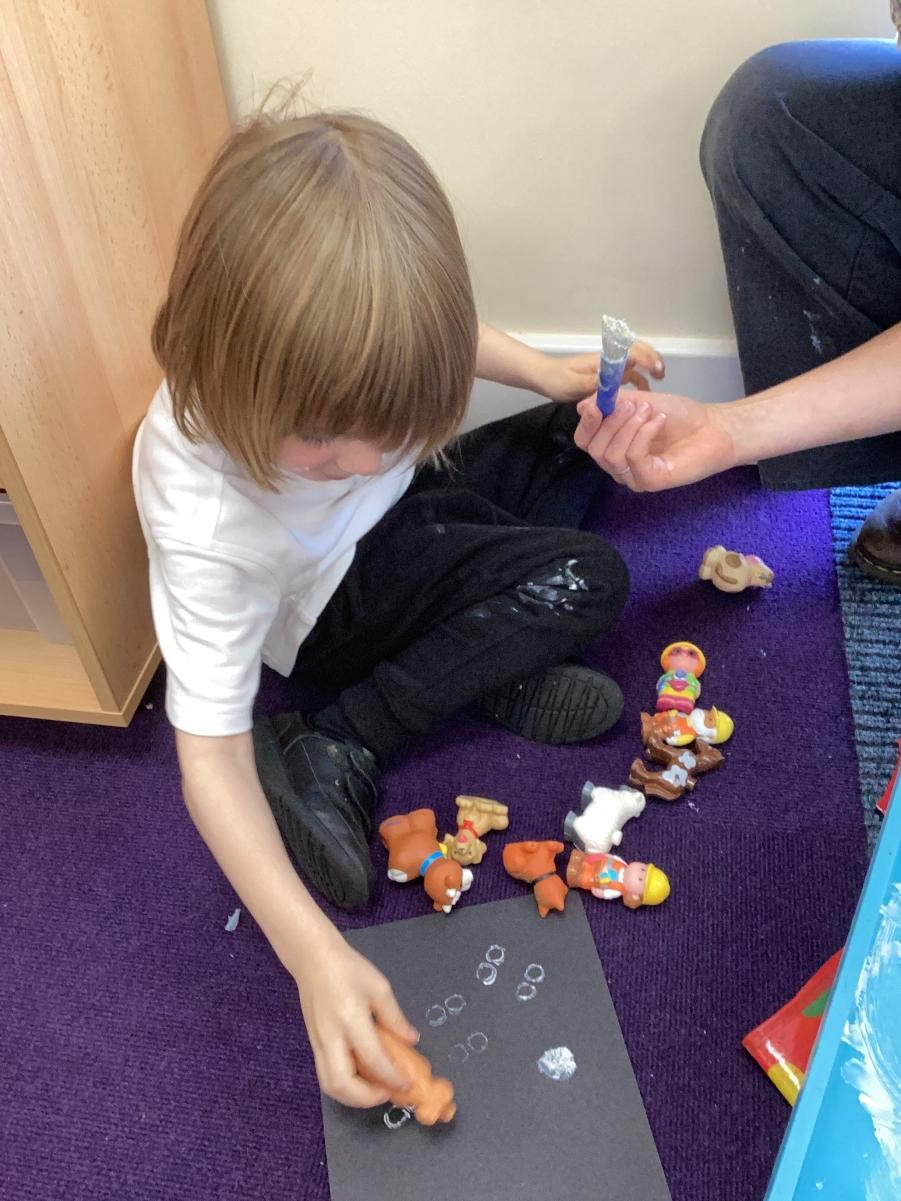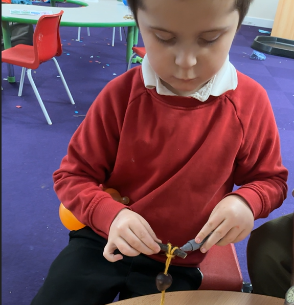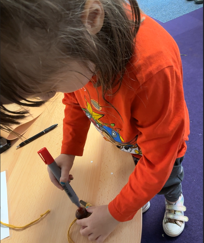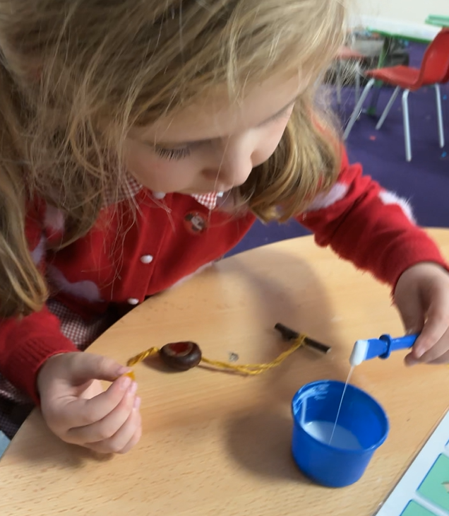 It might be prosaic to observe how time flies by but it feels incredible that we have reached the end of term. It is a lovely moment to stop and reflect on how far we have all come, thinking about the confidence we have gained in moving around the classroom, playing with friends who were strangers only 4 months ago and concentrating so much on our learning when it used to be difficult to even move from one session to another. Christmas finally reached Iris class this week and so we leaned hard into it, with a nativity sensory story (with accompanying songs and costumes!), a Christmas party and playdough snowmen in the absence of any real wintery weather. We have enjoyed making party hats, tree decorations and Christmas cards to go home and, when the rain defeated even the bravest puddle-jumping adventurers, using conkers to make robins in indoor Forest School.