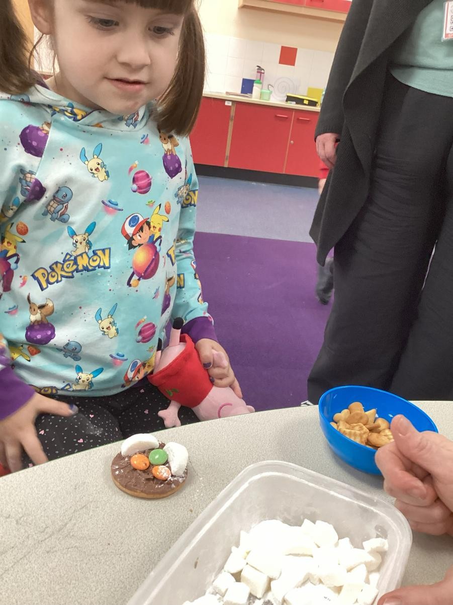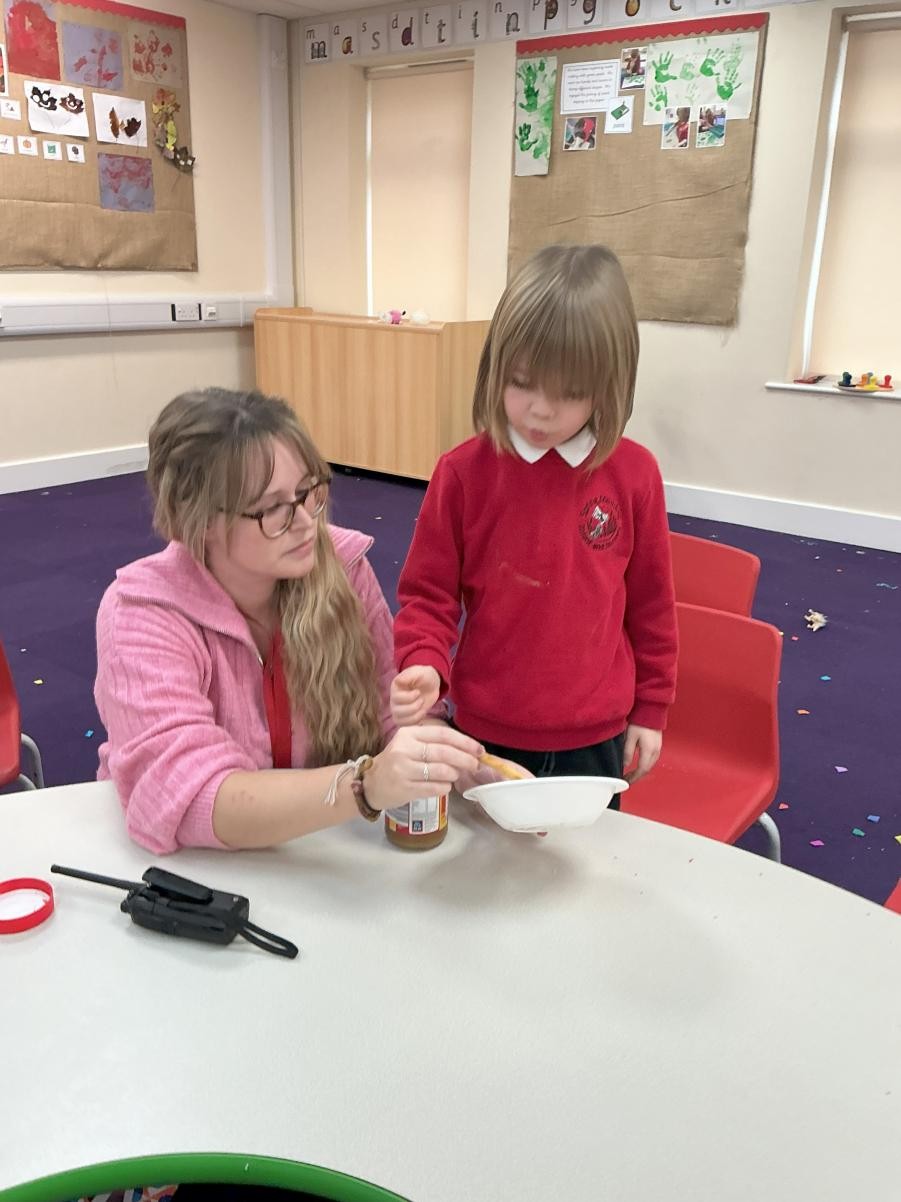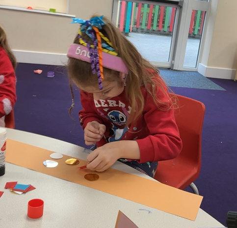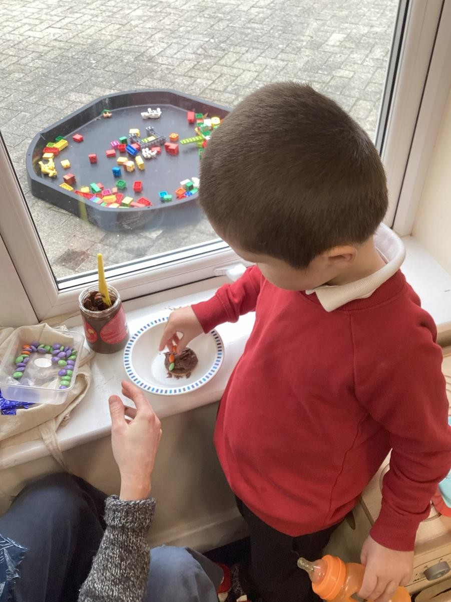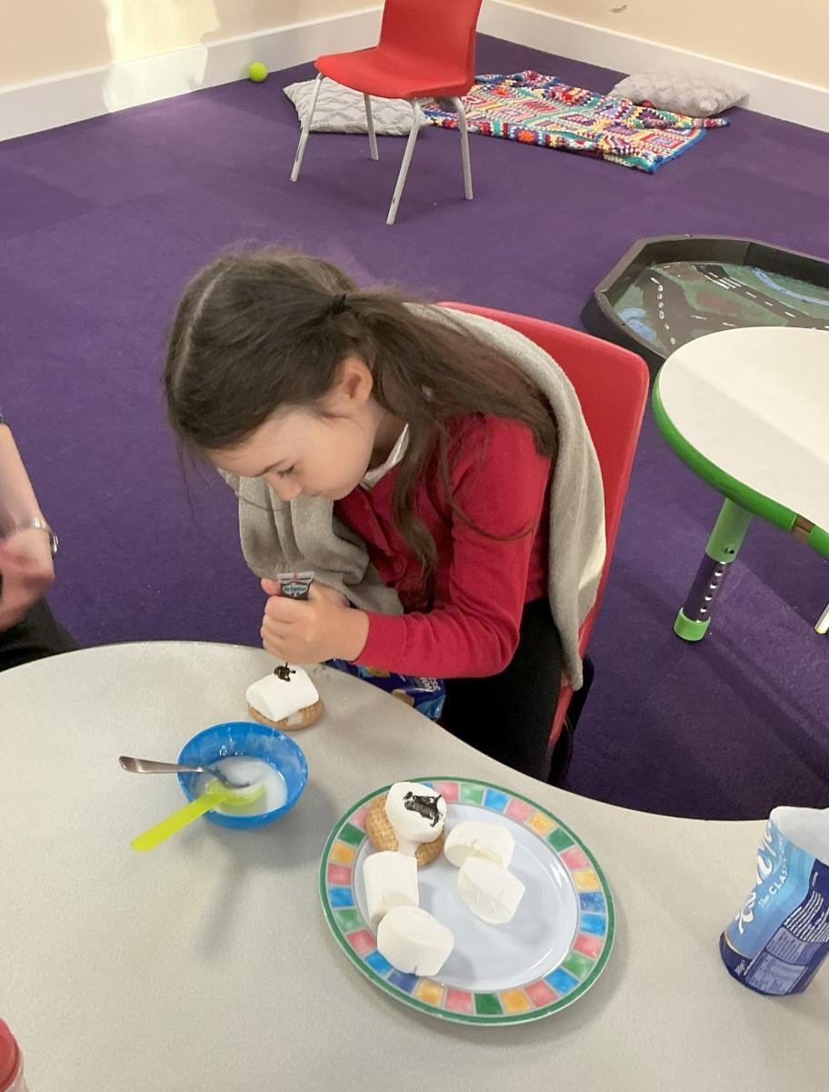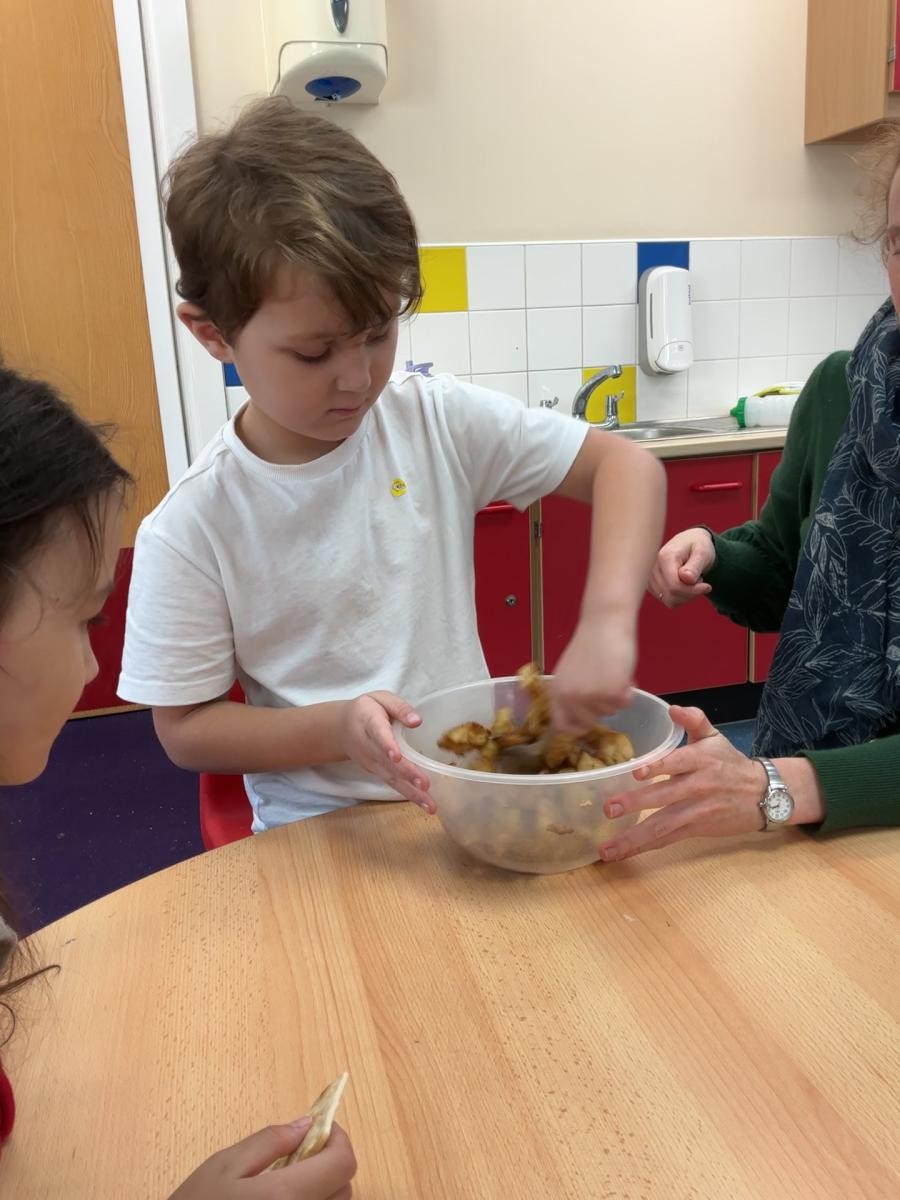 It might be prosaic to observe how time flies by but it feels incredible that we have reached the end of term. It is a lovely moment to stop and reflect on how far we have all come, thinking about the confidence we have gained in moving around the classroom, playing with friends who were strangers only 4 months ago and concentrating so much on our learning when it used to be difficult to even move from one session to another. Christmas finally reached Iris class this week and so we leaned hard into it, with a nativity sensory story (with accompanying songs and costumes!), a Christmas party and playdough snowmen in the absence of any real wintery weather. We have enjoyed making party hats, tree decorations and Christmas cards to go home and, when the rain defeated even the bravest puddle-jumping adventurers, using conkers to make robins in indoor Forest School.