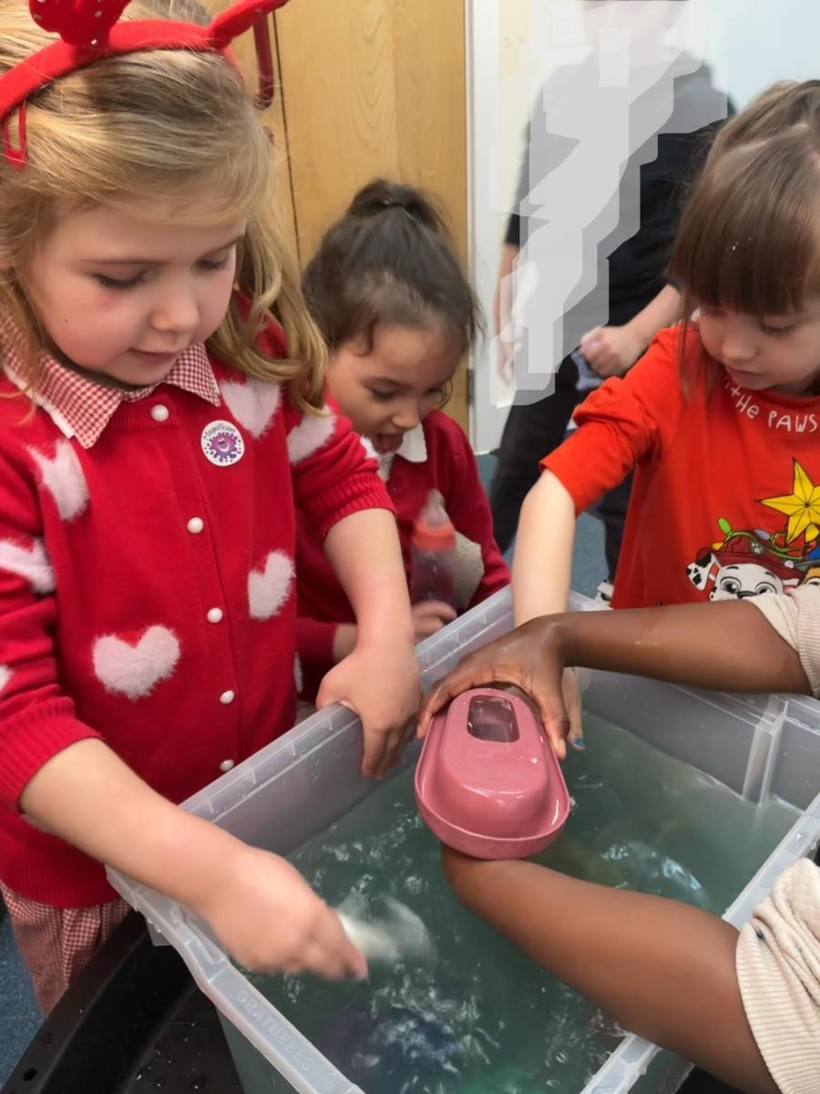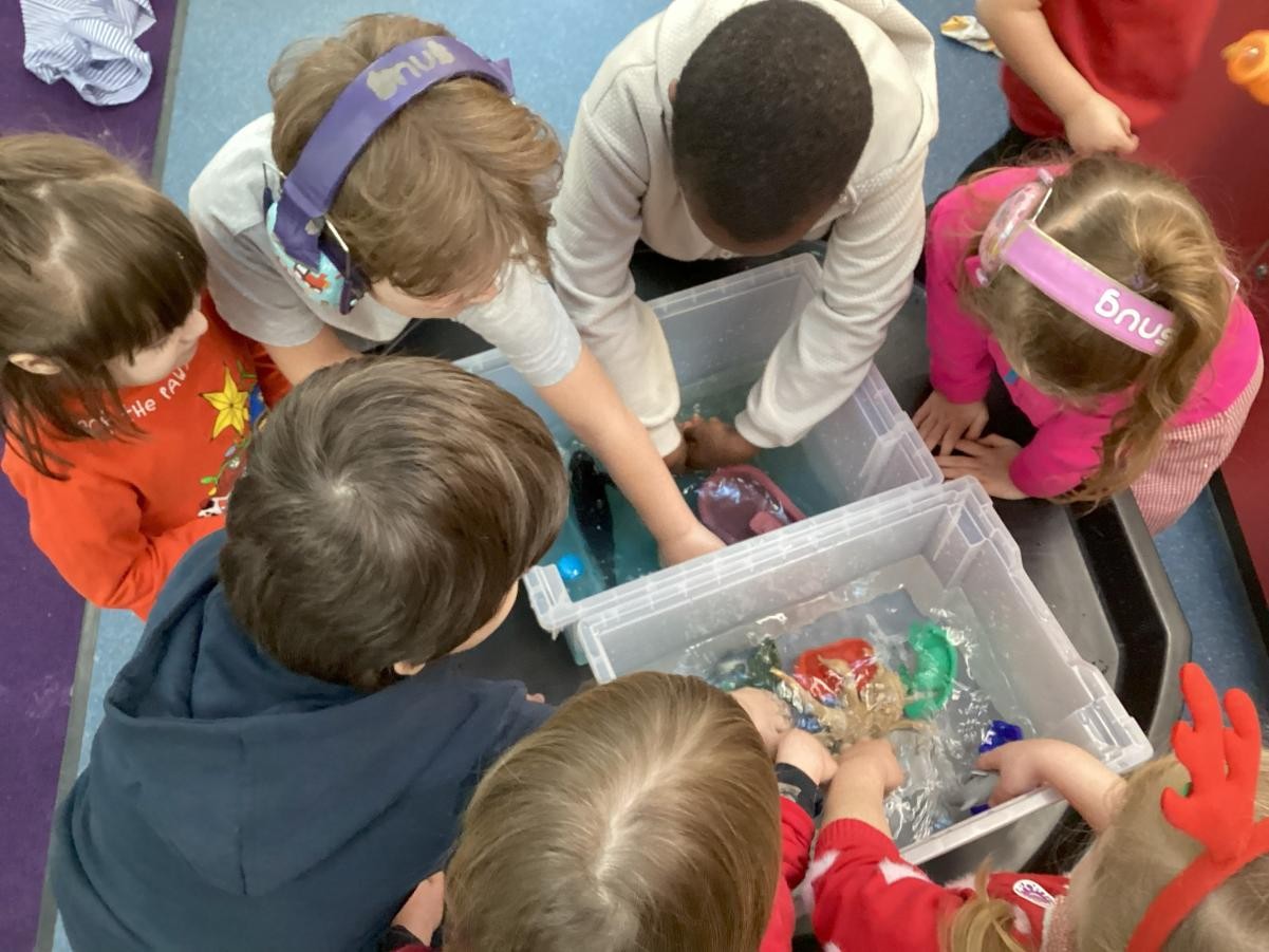 We reached boats in our transport topic this week and needed no better excuse to turn a beautiful Oliver Jeffers book a sensory story. Lost and Found is a heart-warming tale of a boy's journey to help his new friend (a penguin) find his way home, in the face of apparently insurmountable odds: a ship's horn blares over his question, his rubber duck turns his back on him and other birds? well, "some birds are just like that". It is a tale that every adult and child needs in their life, and in Iris class we have enjoyed playing with ice and water. Jeffers's charmingly simple illustrations also gave us an excuse to explore using watercolour paints to make our own paper chain paper, which is now giving Iris class an original festive edge ready for our last week of term! In between all of this, we of course still found time to continue developing our mark-making, play with playdough and take part in Playcircle to develop our self-care skills.