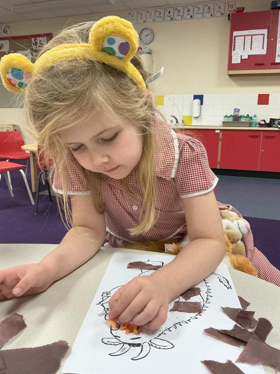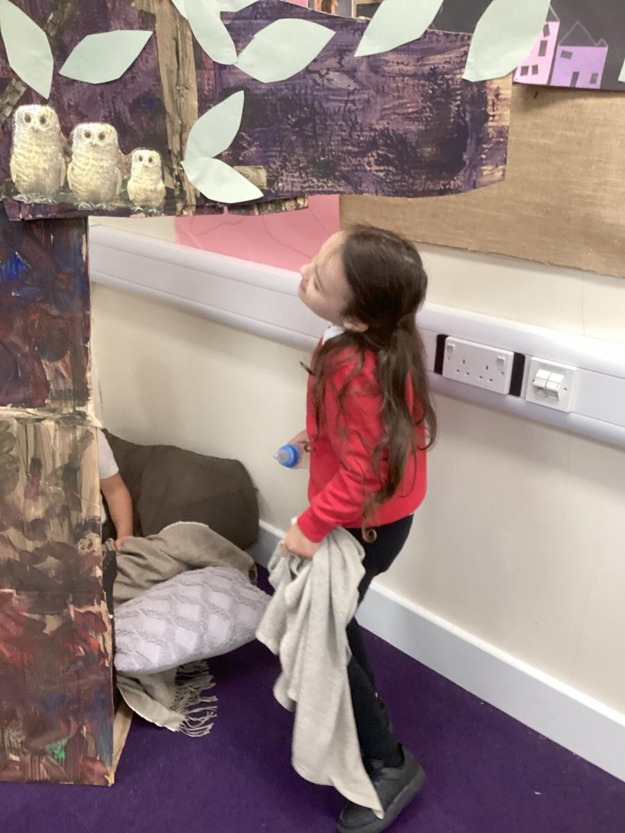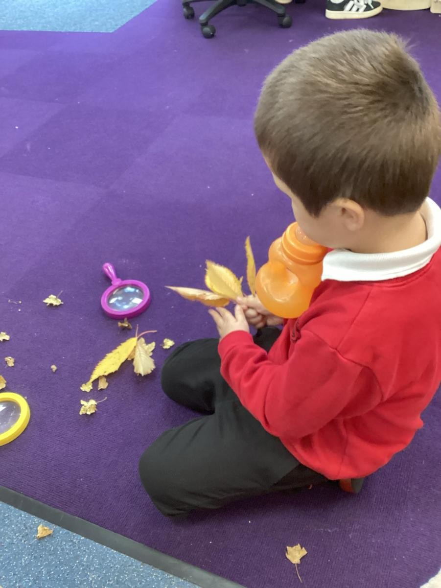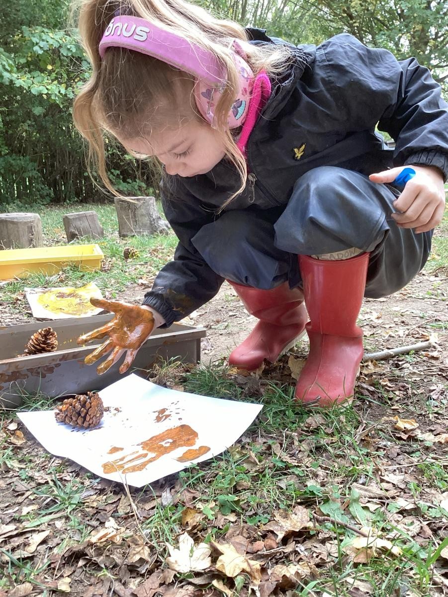 Autumn, 'season of mists and mellow fruitfulness', as the poet said. We have been enjoying it so much this week. Although Thursday proved a little to wild for forest school, we have delighted in the outdoors on other days, taking full advantage of puddles left by overnight storms and watching autumn leaves spin and whirl on the winds. With the framework of Leafman carrying over from last week, we have benefitted from the joy of autumn leaves, trying leaf rubbings and, more successfully, leaf printing. On days when the outside has felt drear and unwelcoming we took lessons from animals and sheltered in our classroom den.