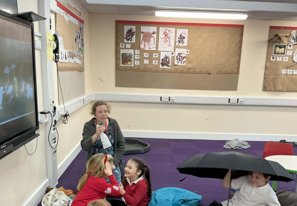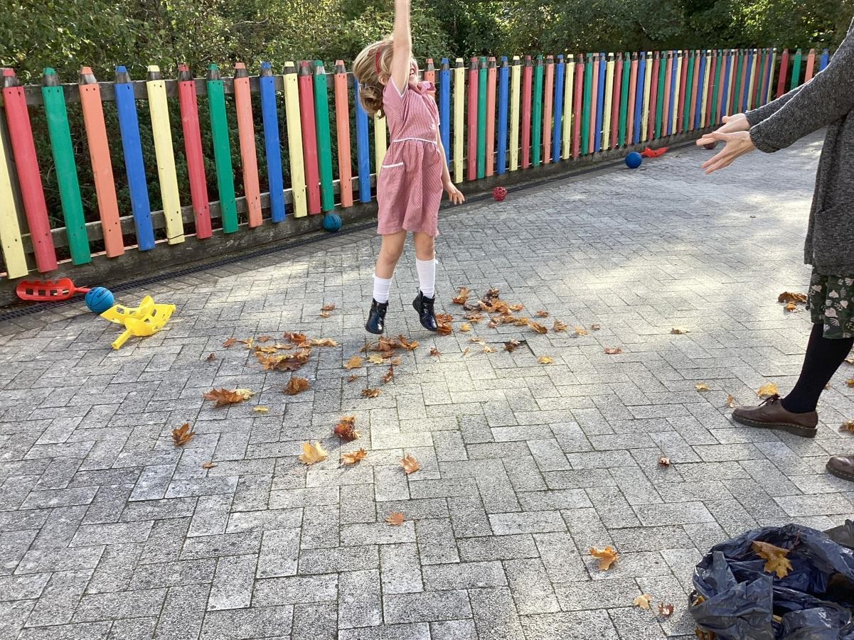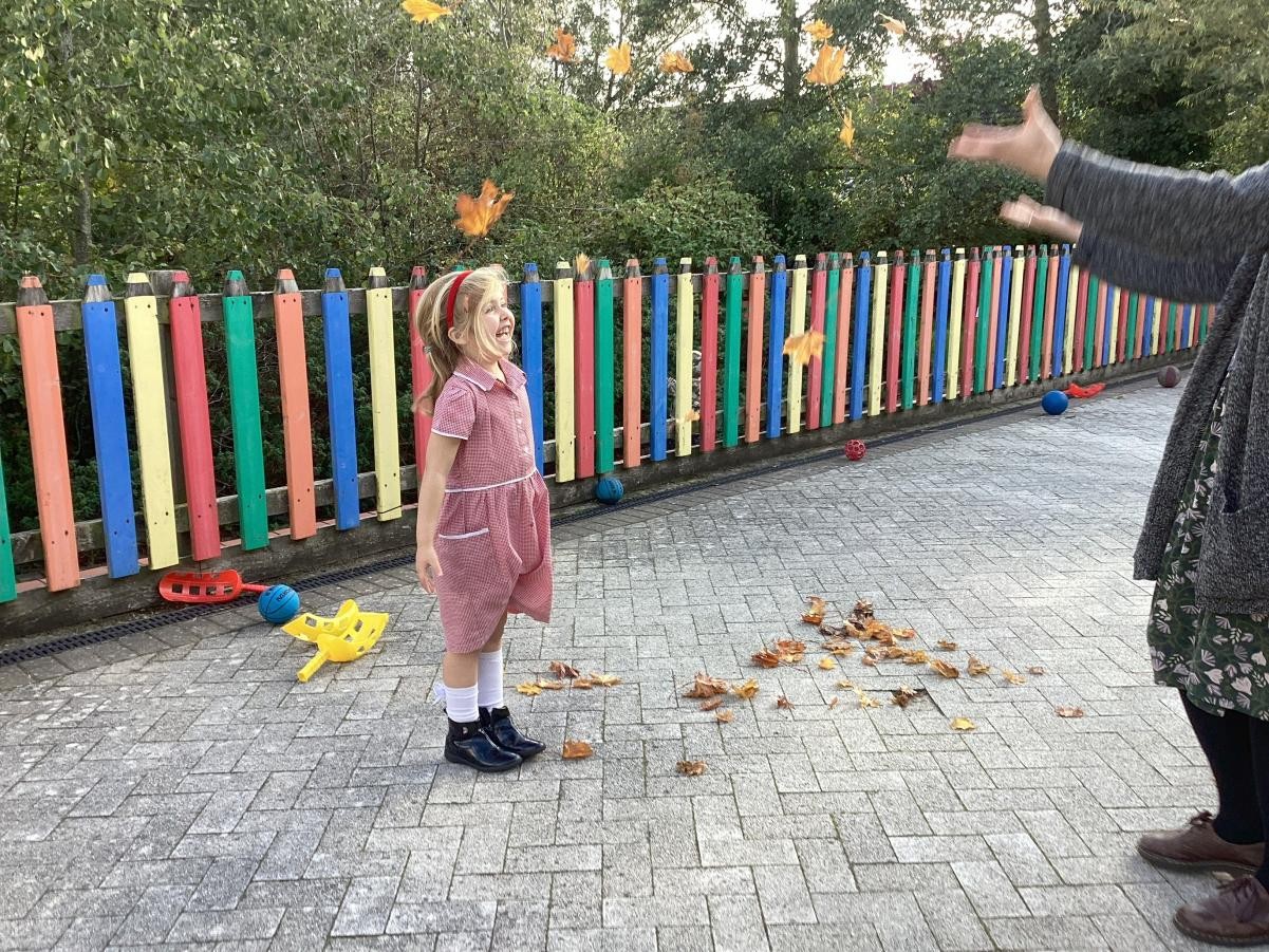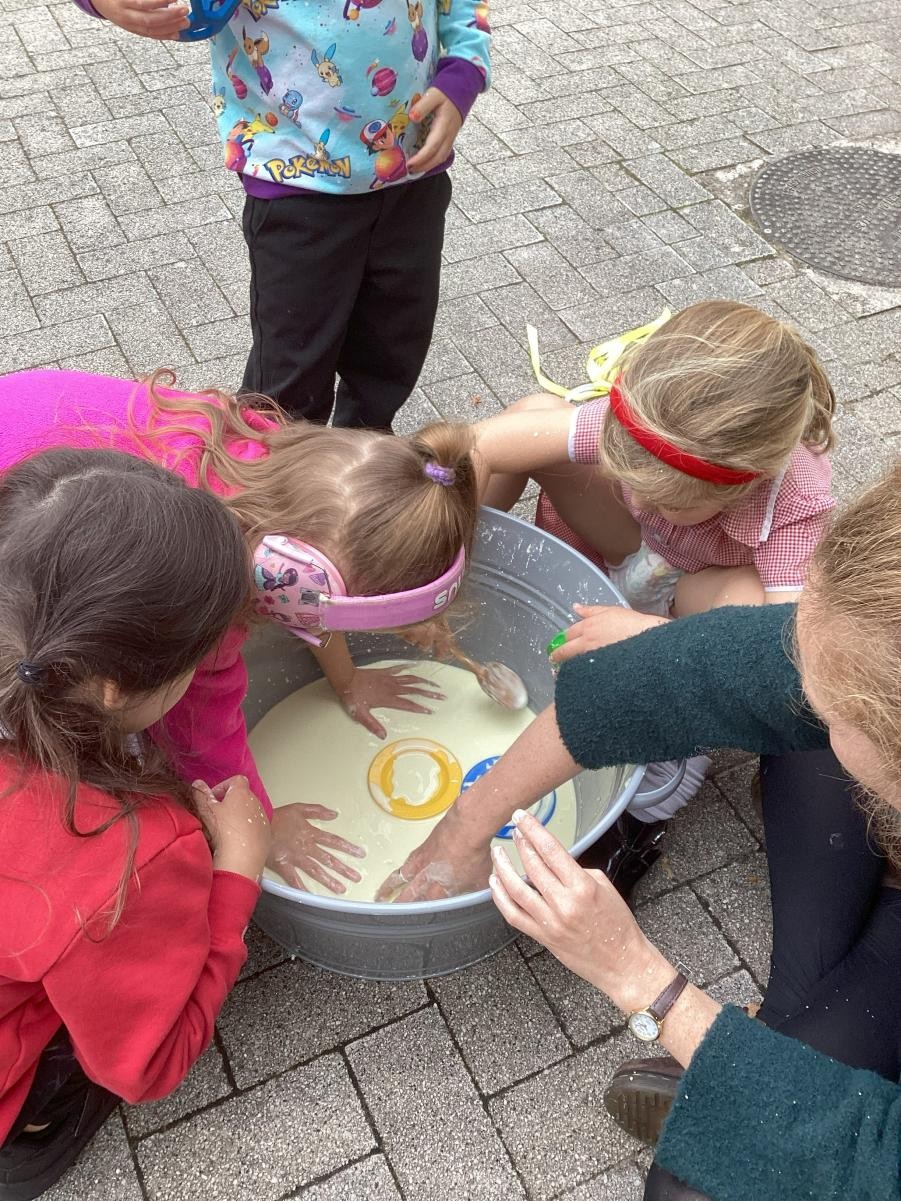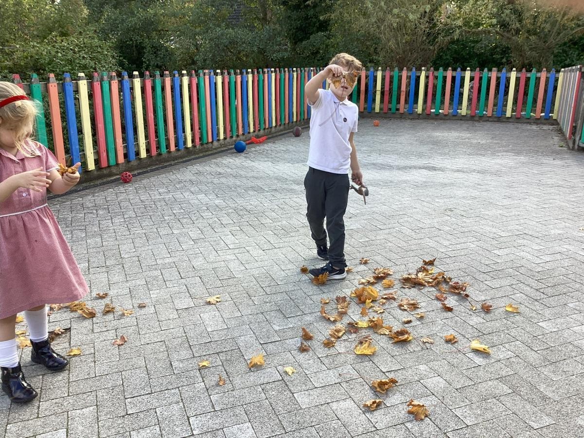 We've been enjoying Autumn this week, both the changing leaves on the trees outside our classroom and playing outside. We read Leafman, a whimsical tale about the stories we can find in nature if we stop and look around us with wonder, delighting in the crunching of leaves and the sounds of the animals that Leafman passes over as he travels on the wind. We also delighted in the puzzle of playing with cornflour gloop, enjoying the way the non-Newtonian fluid baffled our expectations as it hardened under our hands only to pour from cups like water.