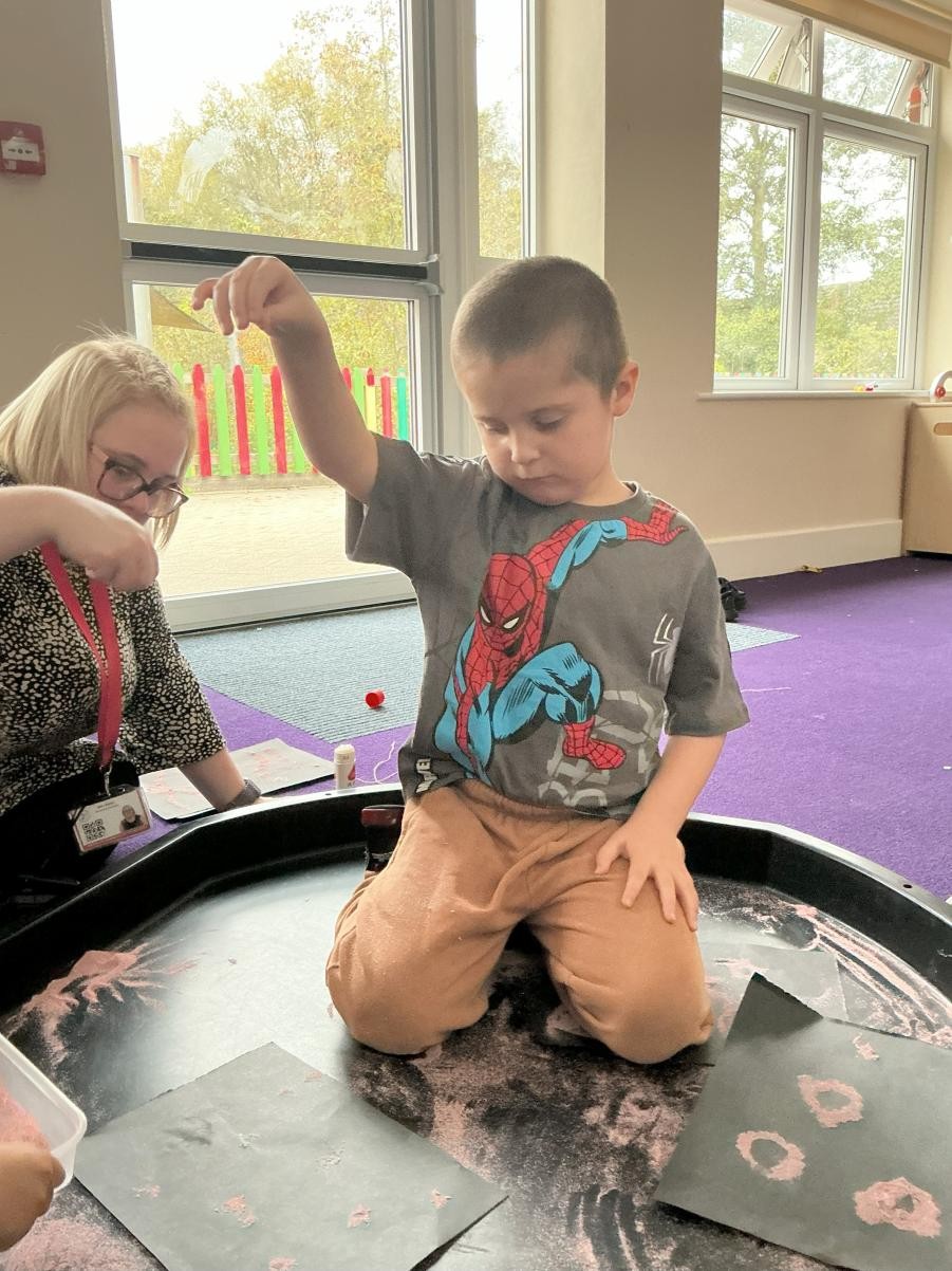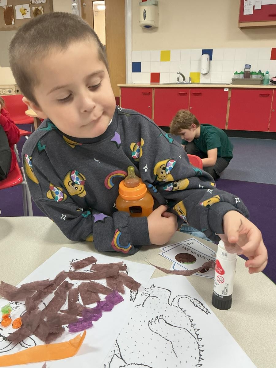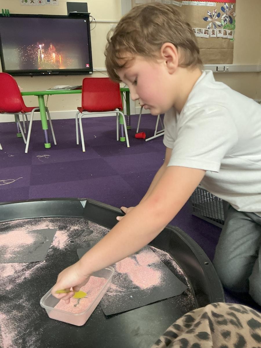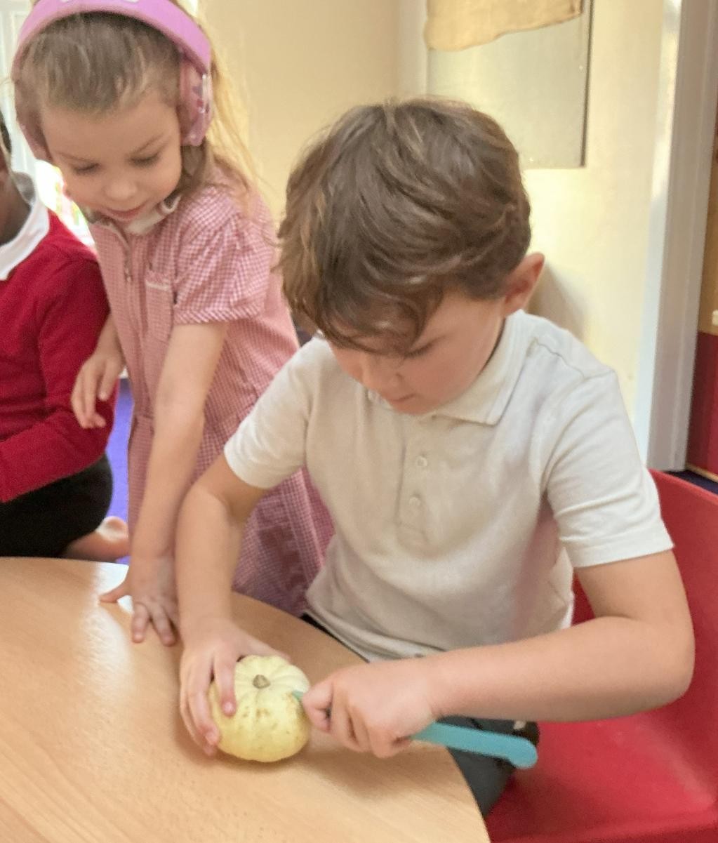 October is over and we have arrived already in November. It has been so lovely to be back again in the whirlwind of activity of school. When one reflects on the festive calendar, it is obvious to see that our ancestors found these darkening days as tricky as us, with such an array of celebrations. And how we profit from their wisdom! In Iris class we have really enjoyed activities around bonfire night this week, relishing in the sensory delight of sprinkling sand to make firework art and experiencing the pop and fizzle of fireworks on our tongues with some rather magical edible fireworks! (I am reliably informed that popping candy may have a significant part to play in the recipe). Though we might be a bit late to the party, we were also rather intrigued by some lovely rounded squashes in our classroom. After sorting them and lining them up in various ways, we also explored their insides, carefully cutting them open with plastic knives (and no small amount of determination) to discovered their slimy seeds and soft, stringy pulp. To round off such a lovely beginning to this half-term, we read The Gruffalo as our sensory story, setting ourselves up for next week's learning when we embark on our topic of transport, thinking first about the simple pleasure of taking for a stroll in a deep dark wood...