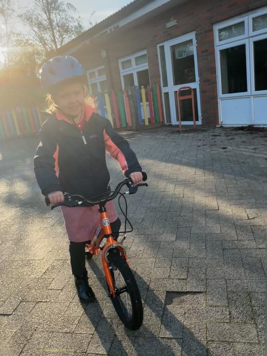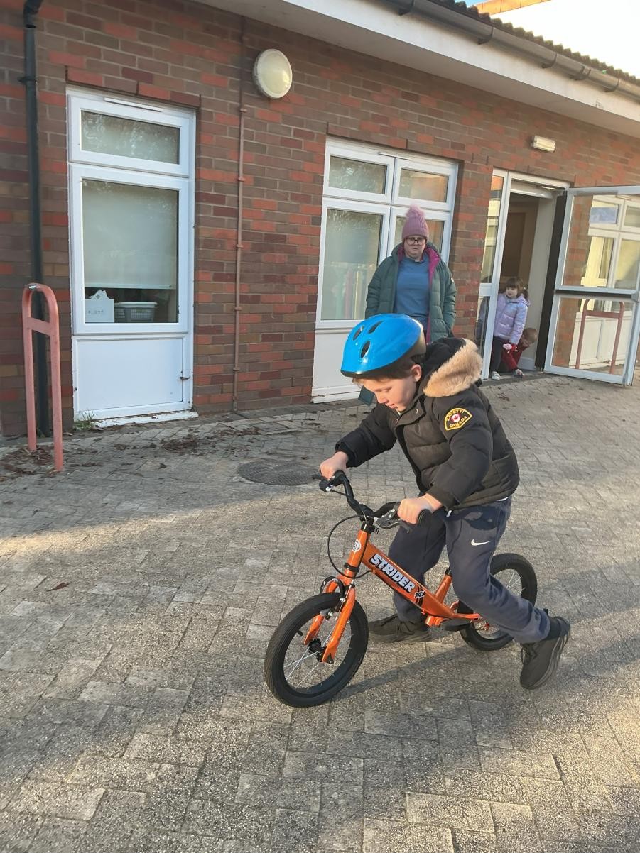 We have been moving forwards in a transport topic, beginning to gain speed this week. We made biscuits into rather tasty gruffaloes with smarties and chocolate spread and, having devoured our creations with gusto, we left walking behind and begun to think about bikes. We really enjoyed our sensory story of Mrs Armitage On Wheels, especially taking pleasure in the umbrella and the slimy soap, and made big pictures with small wheel tracks. Inspired, on Friday afternoon we also took to our bikes and became Iris Class On Wheels.