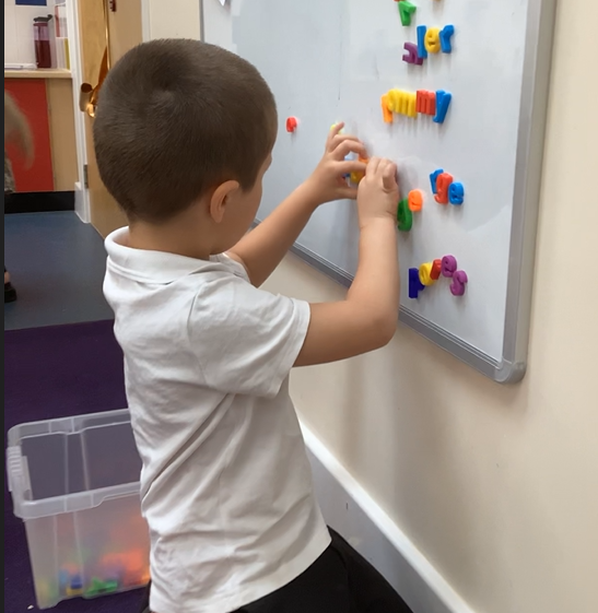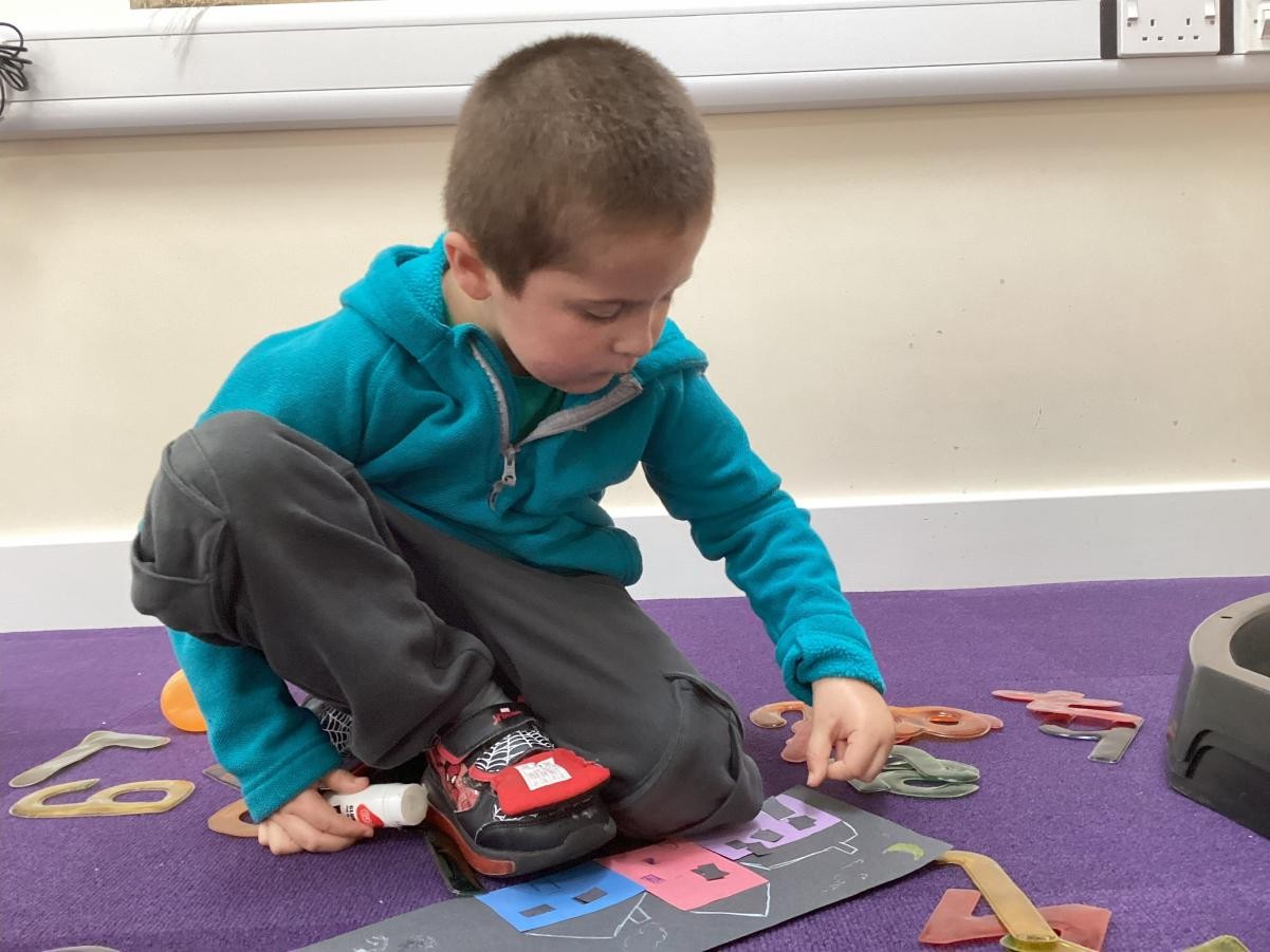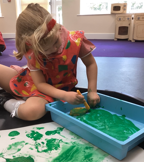 As part of our All About Me topic we have been learning about different parts of our body and thinking about our skeleton. As well as reading Funny Bones as our sensory story, we have been labelling drawings of our body and making more hand prints. As the children become more comfortable they have also become more confident in exploring the toys and resources around the room, making the classroom into their own space.