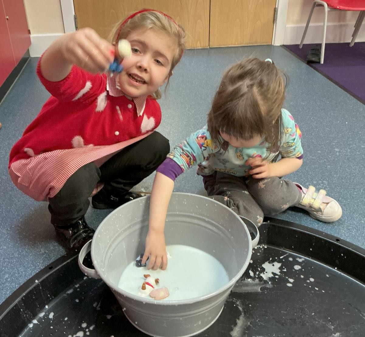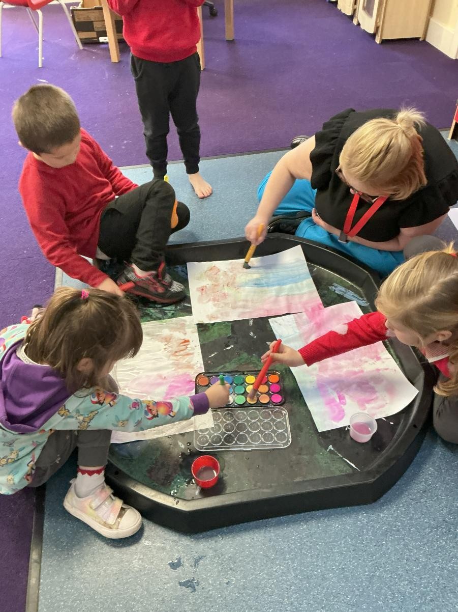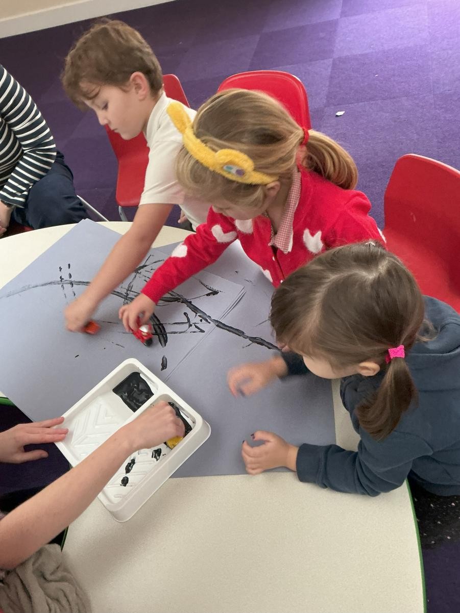 And just like that November has elapsed and we begin to think about the end of the year. Gradually, gradually the frivolities and festivities of the coming months begin to infuse our day to day and in Iris class we were excited to have some parents come and join us to make beautiful Christmas crafts and decorations. We were especially partial to edible ones (melted snowman biscuit anyone?) but also enjoyed sprinkling tissue paper, watching it fall and making magnificent Christmas trees to brighten up our class windows. Other days went on much the same, expanding our minds and worlds. We always enjoy freeing some of our energy during soft play and exploring different textures and materials for mark making. After reading Oi! Get off our train, we made big paintings like John Birmingham's Turner-esque illustrations, soaking up the last winter brightness of Friday.