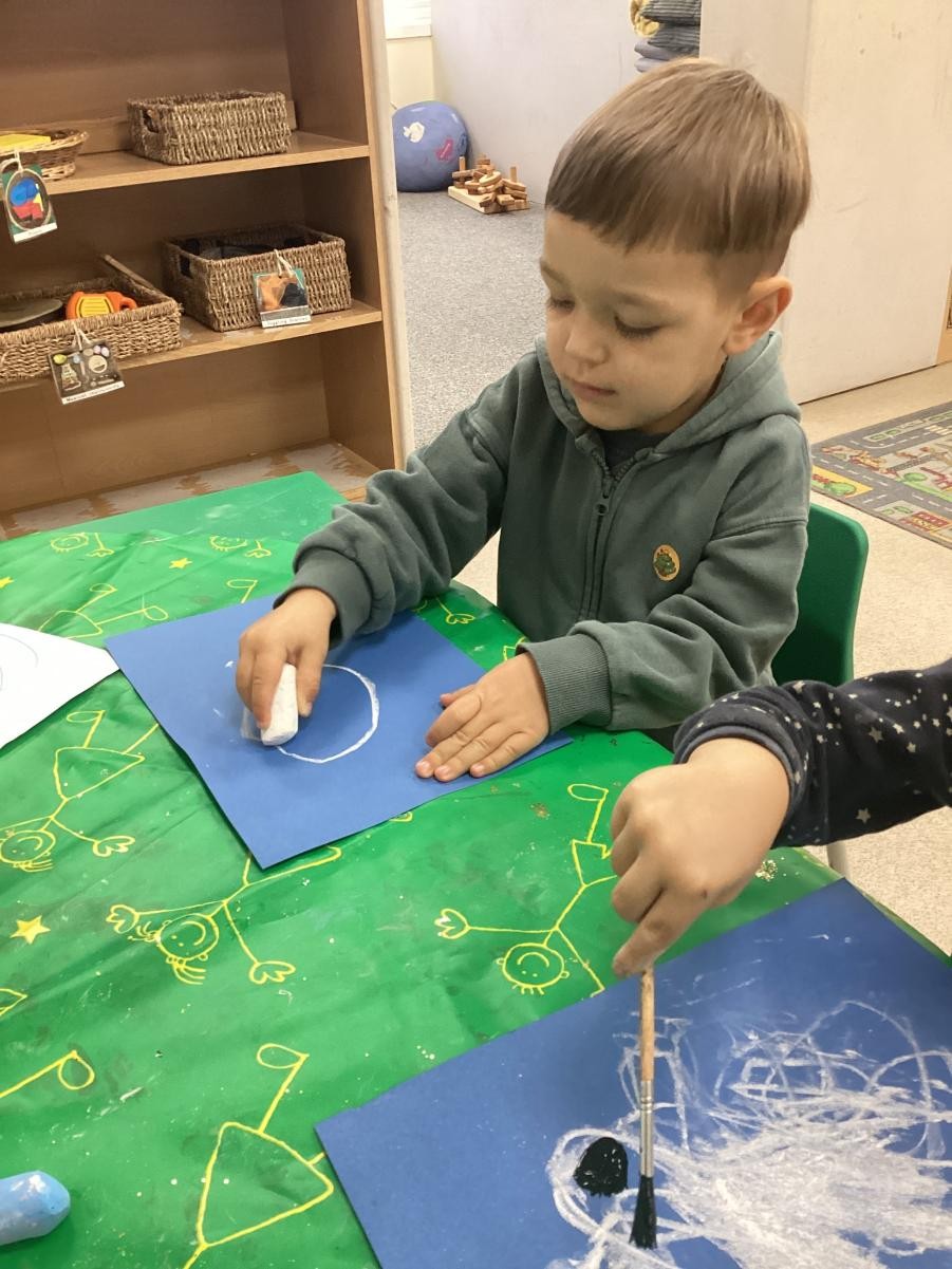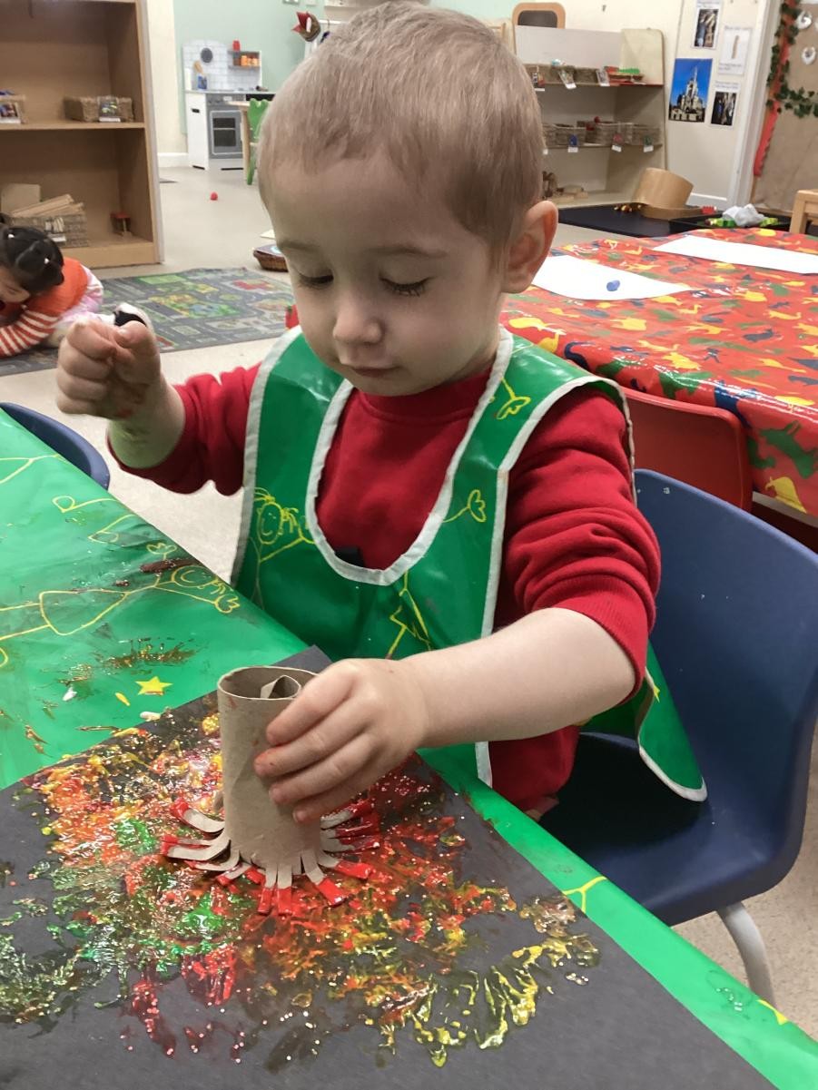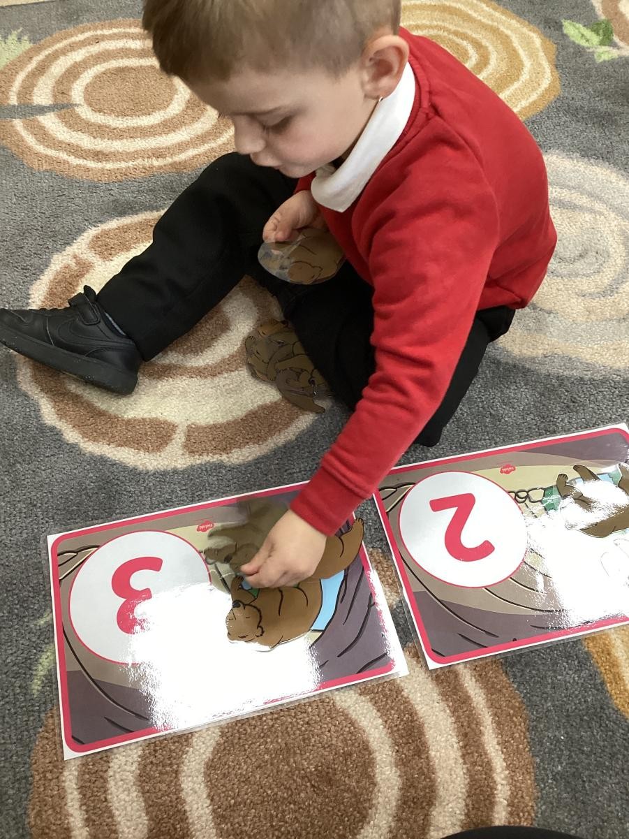 Welcome back after Half Term. This week we have begun our topic for this half term 'Journeys'. Our book for the next two weeks is 'We're Going on a Bear Hunt'. We have had a lot of fun outside acting out the story, pretending to go through all the things they go through. Children have been matching bears to numbers up to 5. Children have been using the construction area to make their own caves for a bear. Children have been making firework pictures using cut tubes to dip into paint and print. They have also been practising their cutting skills by cutting up paper to stick on tubes to make rockets.