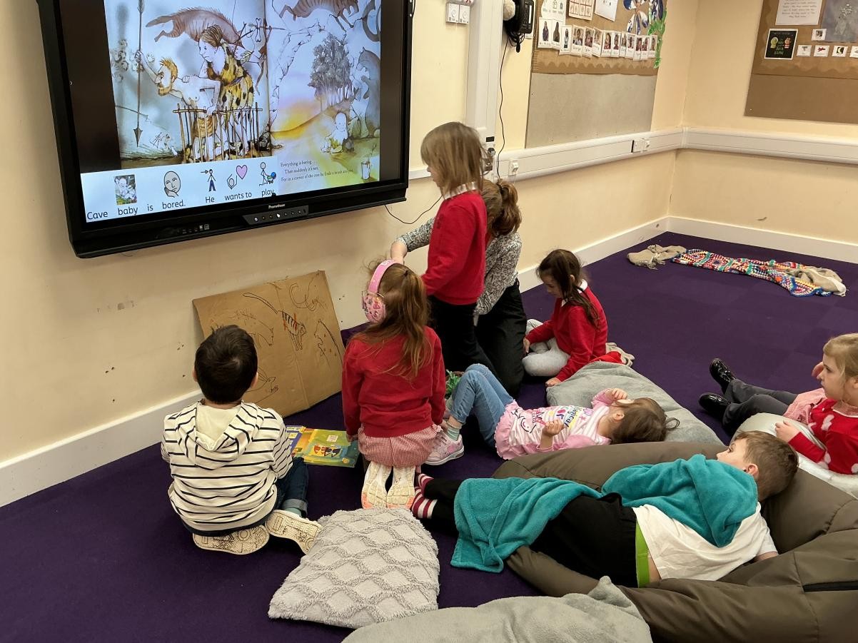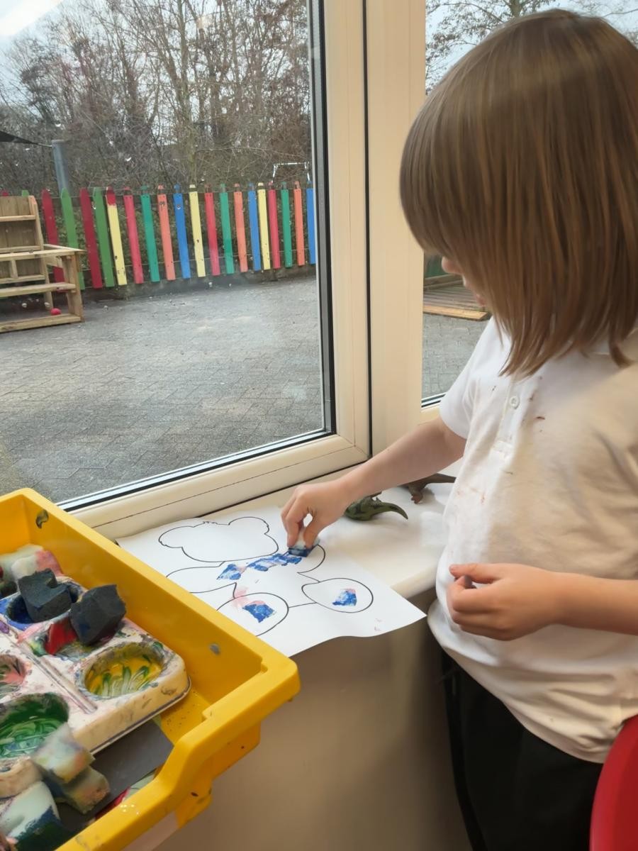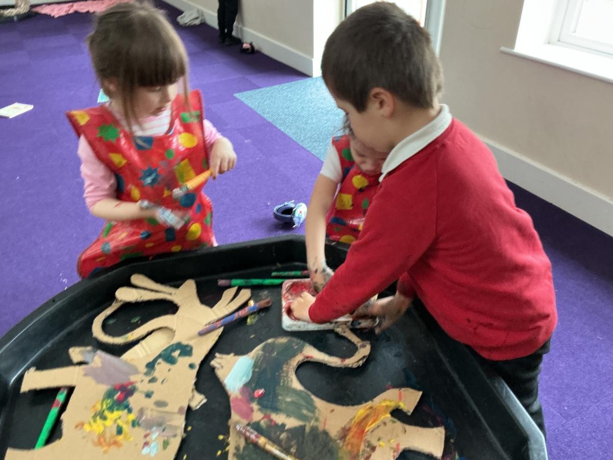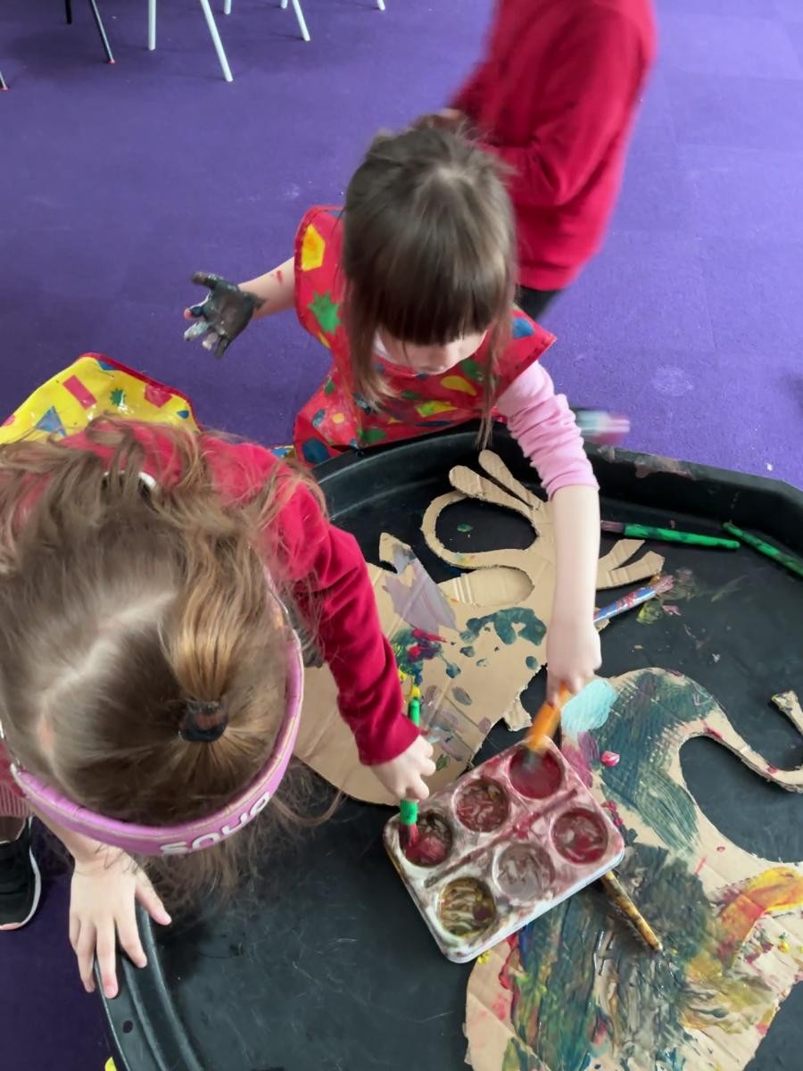 Books are well-loved in Iris class so World Book day was popular, with dinosaurs, princesses and gruffalos joining Iris class. Even better was the excuse that it gave us to have two sensory stories in one week, Cave Baby and The Very Hungry Caterpillar! The former fuelled our artistic minds and we enjoyed getting wildly painty whilst decorating our own mammoths.