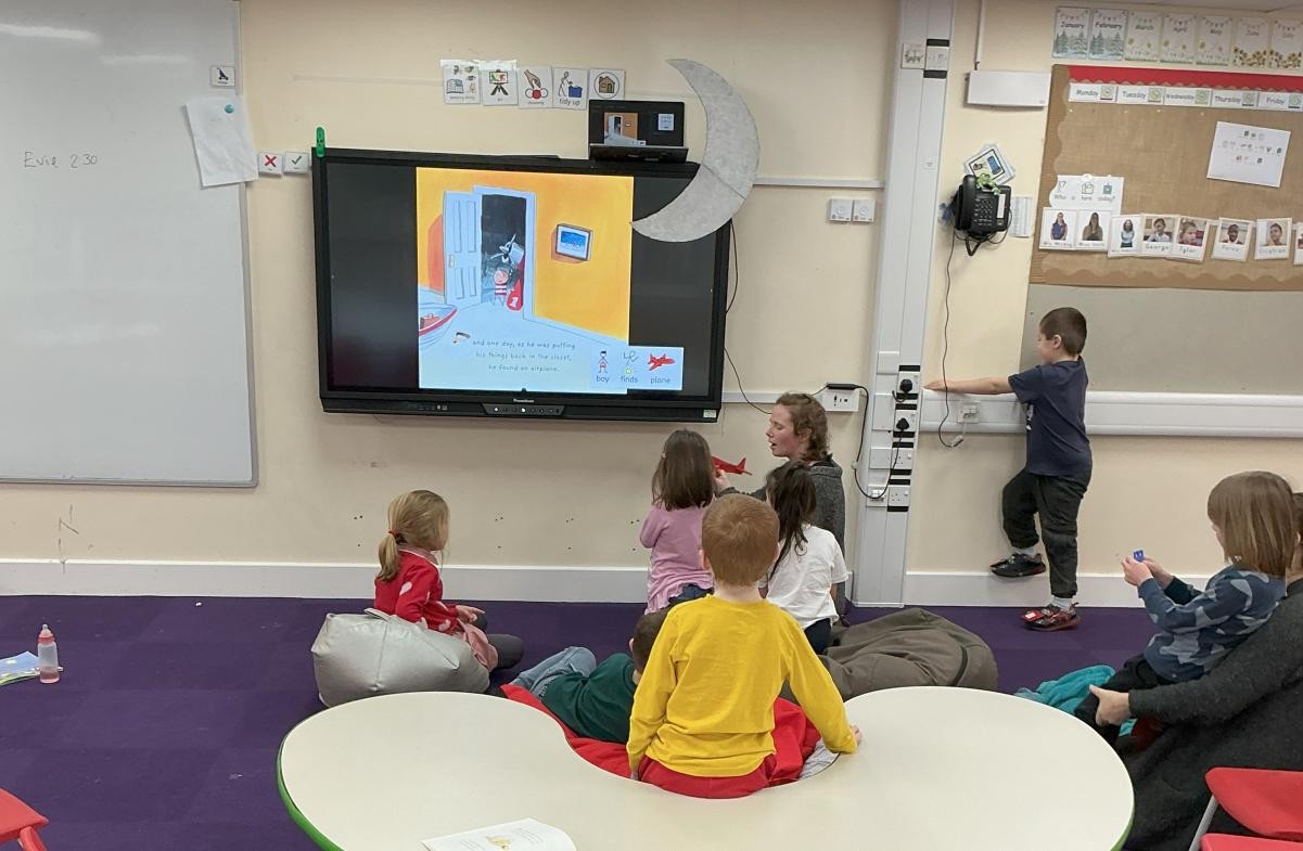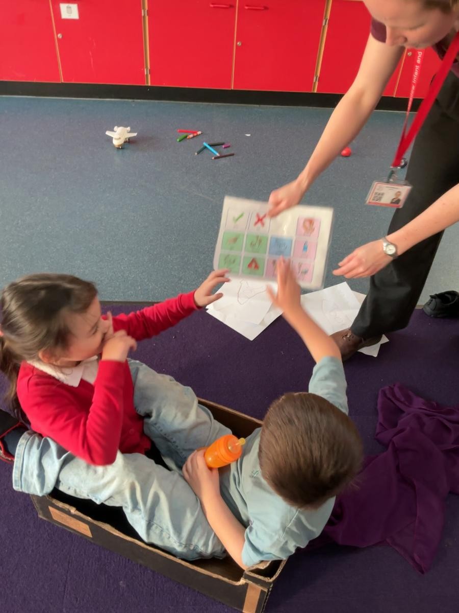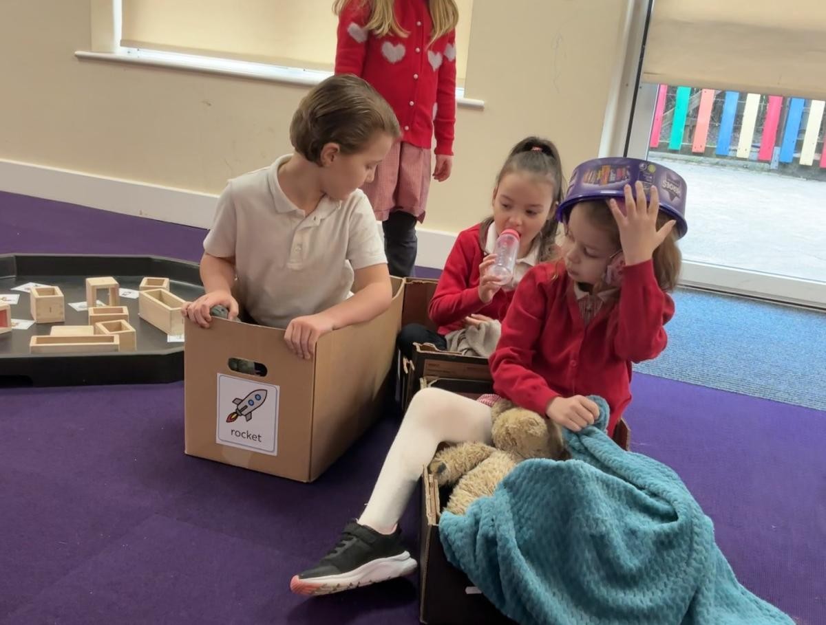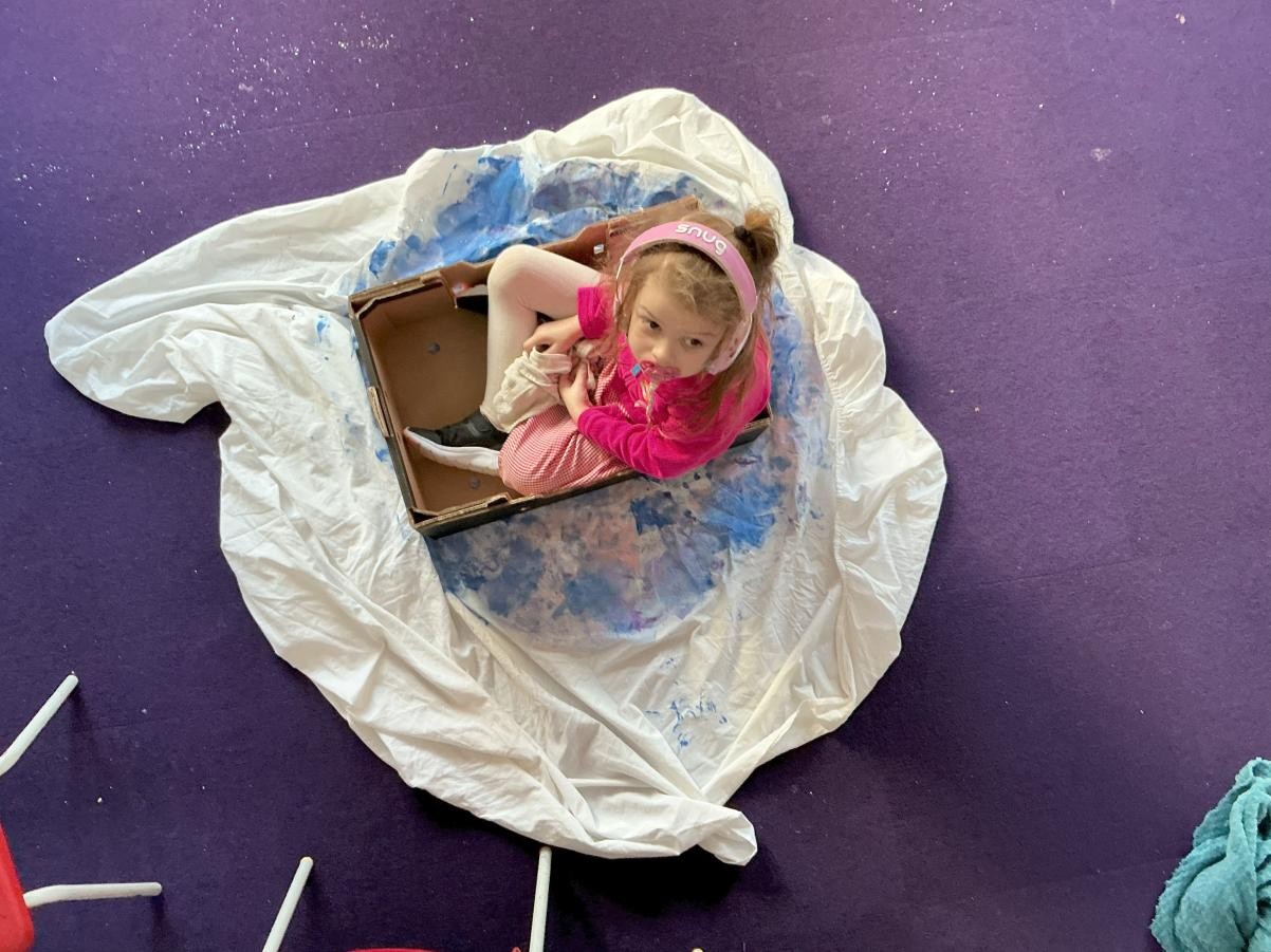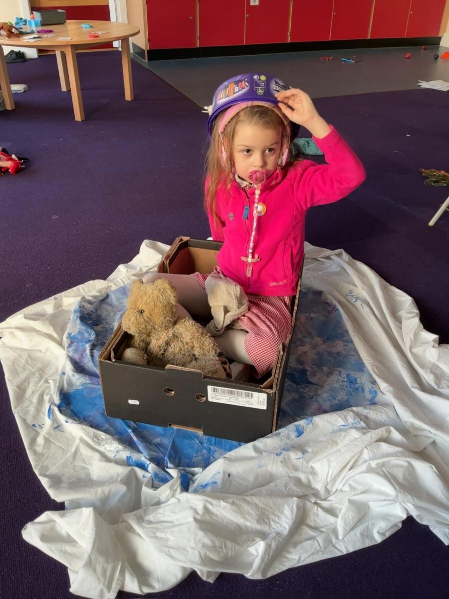 The story of Whatever Next has truly come to Iris class this week. We have really enjoyed being in boxes, especially when they transform in to adult-powered rockets, and have used the toys and props form the sensory story to re-enact the tale during choosing time. We have also been honing our sandwich making and took great pleasure in using sponges to create a magical blue moon to add to our classroom. Amongst that we had high levels of participation during playcircle, with lots of children taking good care of their dolls, carefully following instructions to brush their teeth and wash their face.