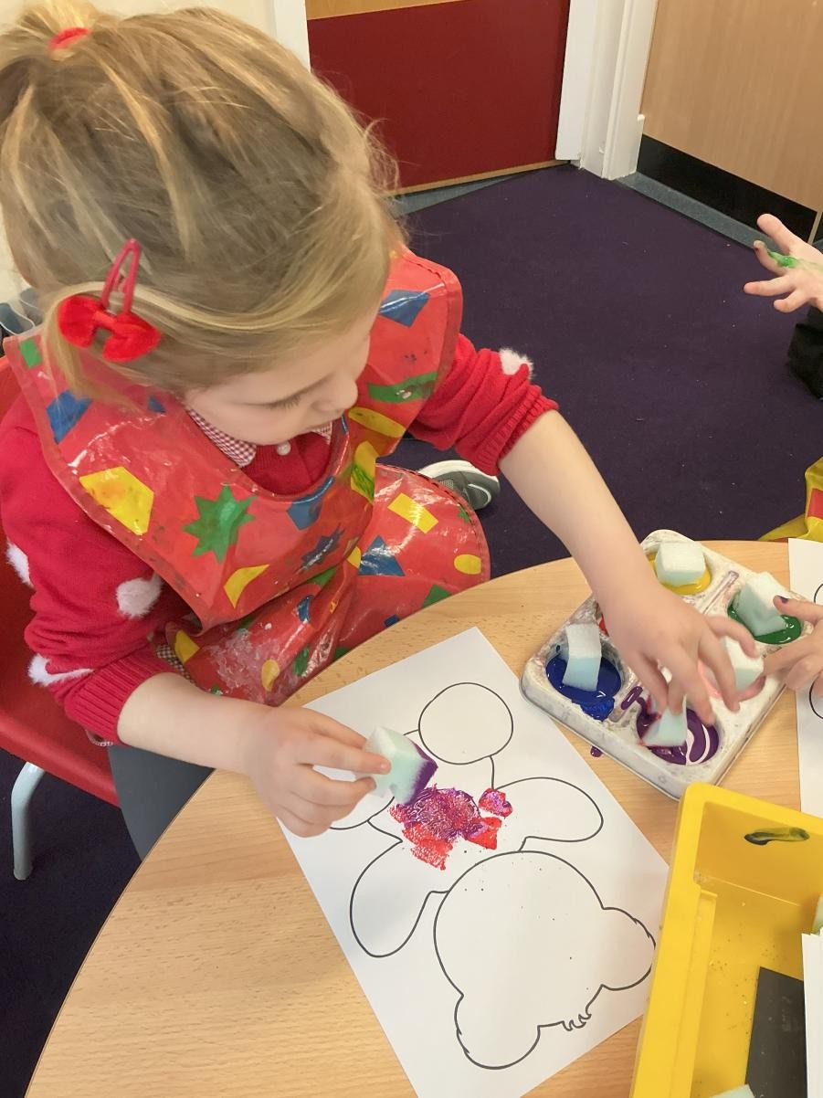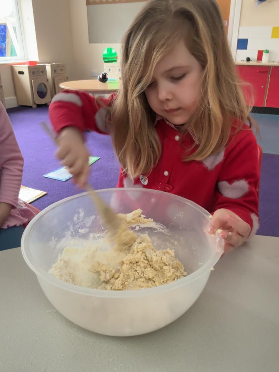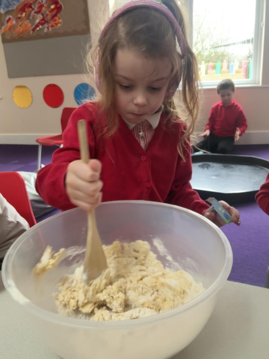 It is March, the month of the hare, so we enjoyed the sensory story of Guess How Much I Love You this week. Whilst the more metaphysical conundrums of measuring love might not have stayed long in our minds, we did enjoy the bubbles and bouncing balls that illustrated the impossibility of measuring love. Following the theme of how important our family is, we made Mother's Day cards and it was lovely to see how confident all the children in Iris class have become around the potential hazard of messy paint and the care and attention they apply to their creative processes. In lieu of actually throwing paint at each other, we still thought about some of the more accessible elements of Holi celebration as we experimented with water and powder paint. On Friday we made delicious buttery biscuits, an activity that is always popular as we so enjoy mixing ingredients and manipulating the dough.