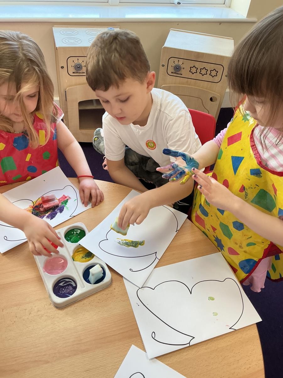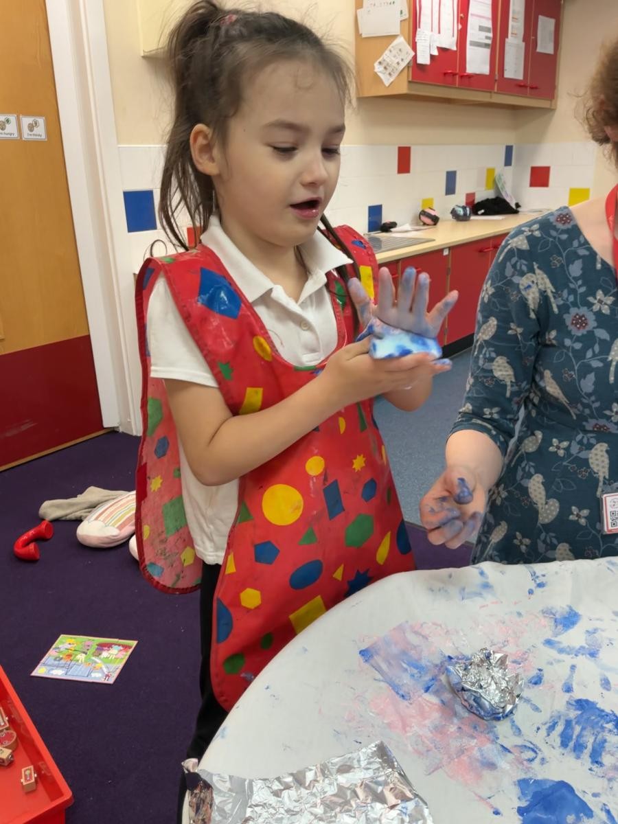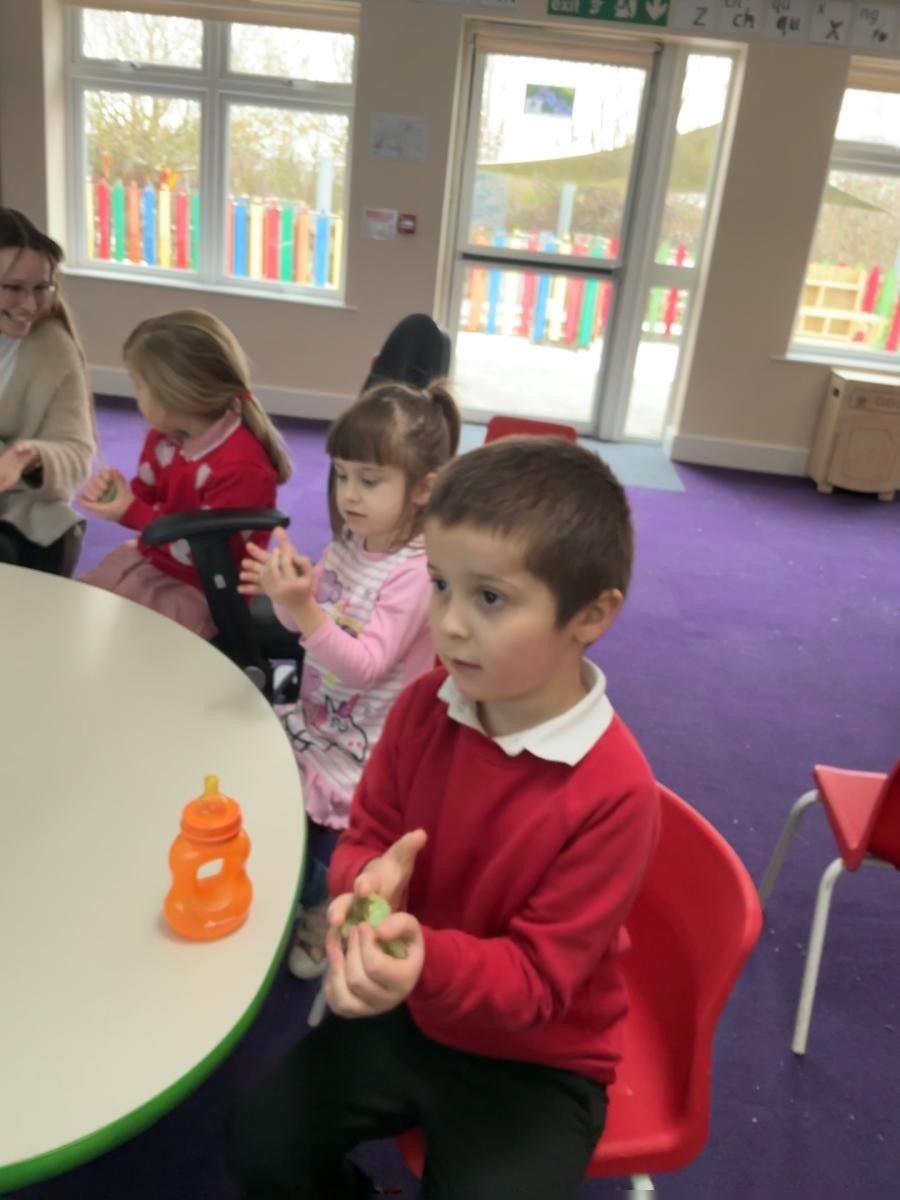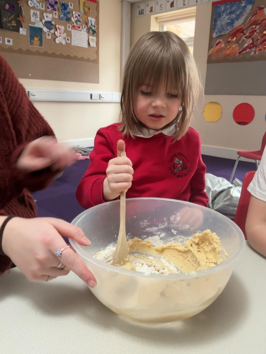 It is March, the month of the hare, so we enjoyed the sensory story of Guess How Much I Love You this week. Whilst the more metaphysical conundrums of measuring love might not have stayed long in our minds, we did enjoy the bubbles and bouncing balls that illustrated the impossibility of measuring love. Following the theme of how important our family is, we made Mother's Day cards and it was lovely to see how confident all the children in Iris class have become around the potential hazard of messy paint and the care and attention they apply to their creative processes. In lieu of actually throwing paint at each other, we still thought about some of the more accessible elements of Holi celebration as we experimented with water and powder paint. On Friday we made delicious buttery biscuits, an activity that is always popular as we so enjoy mixing ingredients and manipulating the dough.