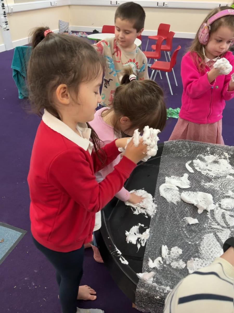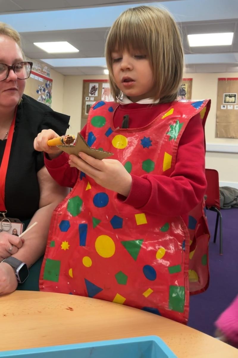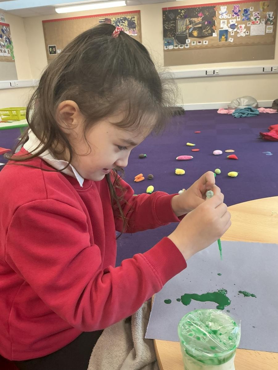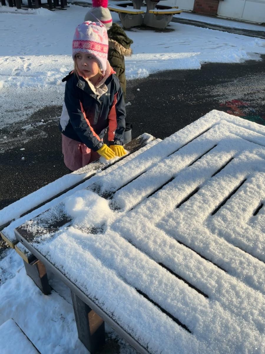 It would be foolish to hope that every January term might begin with snow but oh, what joy to have been so lucky this year! A world transformed, a playground covered in beautiful ice, children enthralled by throwing snowballs and watching their white footprints manifest their running. The inside of the classroom could hardly hope to meet such heights but we were glad to return to our school normalities, exploring new textures and mark making possibilities in messy play, strengthening our dexterity in dough gym sessions and, of course, forest school. We also enjoyed the sensory story of Room on the Broom - especially enjoying the whoosh of the broom flying down to the ground and such a likeable cast of characters - and made our own wands and horrible beasts out of chocolate cereal cakes.