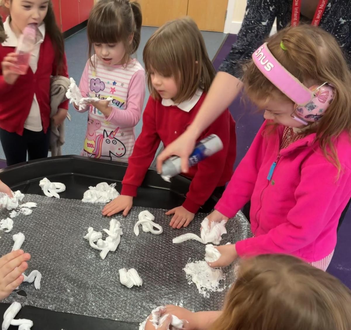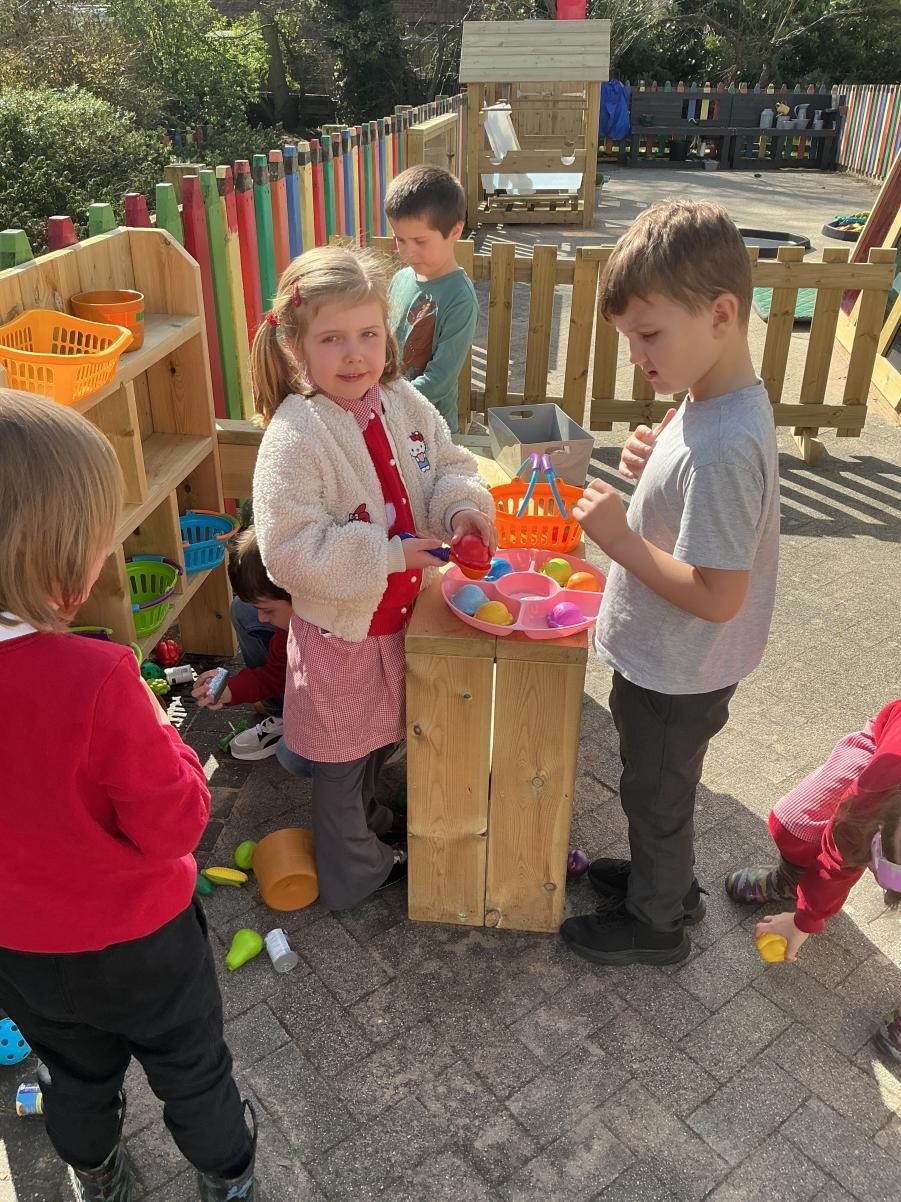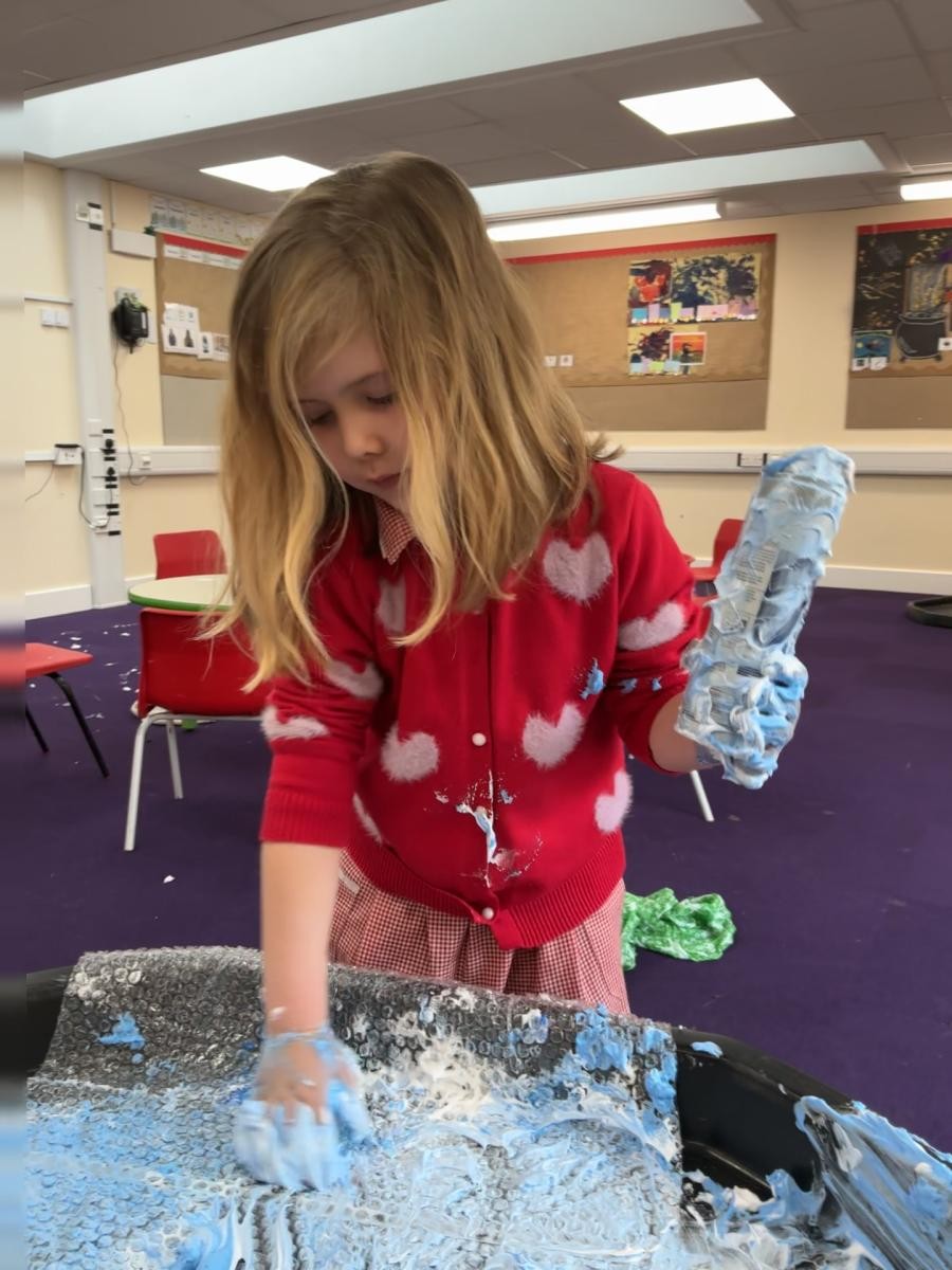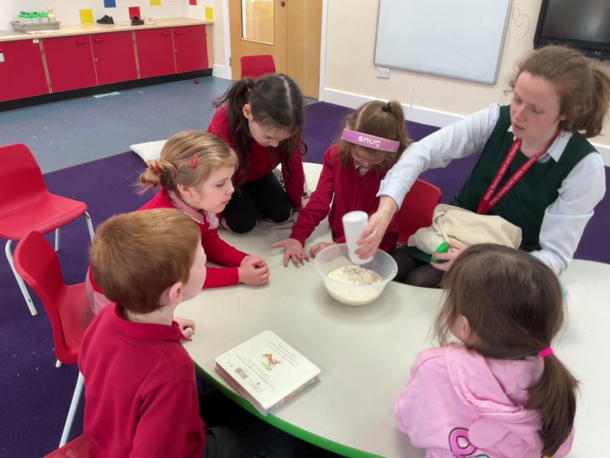 It would be foolish to hope that every January term might begin with snow but oh, what joy to have been so lucky this year! A world transformed, a playground covered in beautiful ice, children enthralled by throwing snowballs and watching their white footprints manifest their running. The inside of the classroom could hardly hope to meet such heights but we were glad to return to our school normalities, exploring new textures and mark making possibilities in messy play, strengthening our dexterity in dough gym sessions and, of course, forest school. We also enjoyed the sensory story of Room on the Broom - especially enjoying the whoosh of the broom flying down to the ground and such a likeable cast of characters - and made our own wands and horrible beasts out of chocolate cereal cakes.