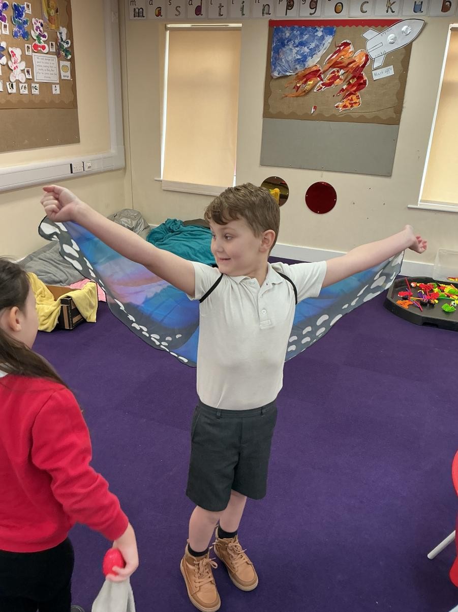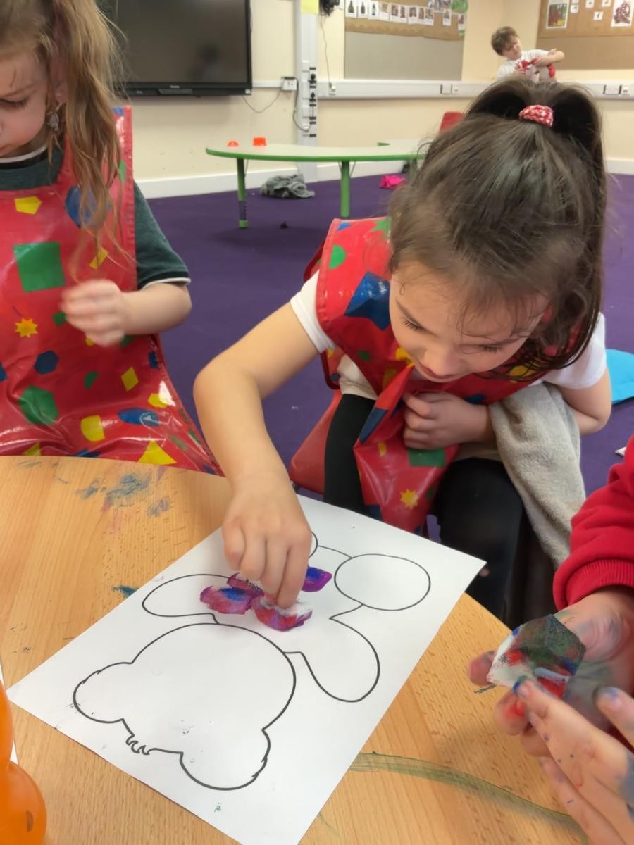 Spring has almost sprung and it was lovely to be back in Iris class. To get into our new topic of Growing and Changing we read the sensory story of Monkey Puzzle. We enjoyed re-enacting the 'No, no, no!' with props around the classroom, dismissing the animals that clearly could not be the monkey's mother. We also took the opportunity to explore that essential primary art experience, folding painted butterflies to make beautiful symmetrical prints.