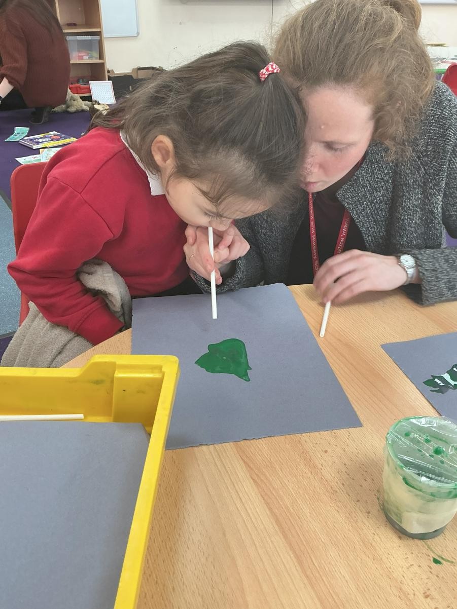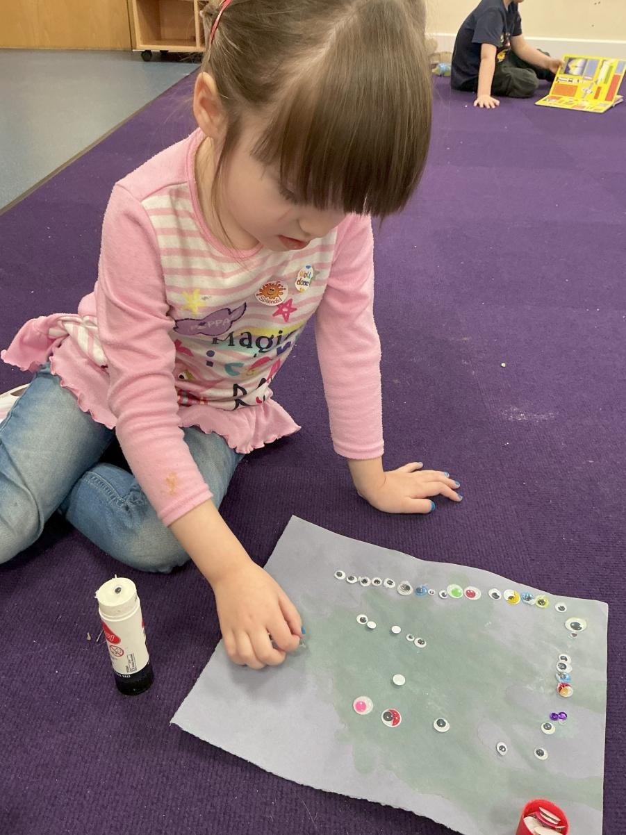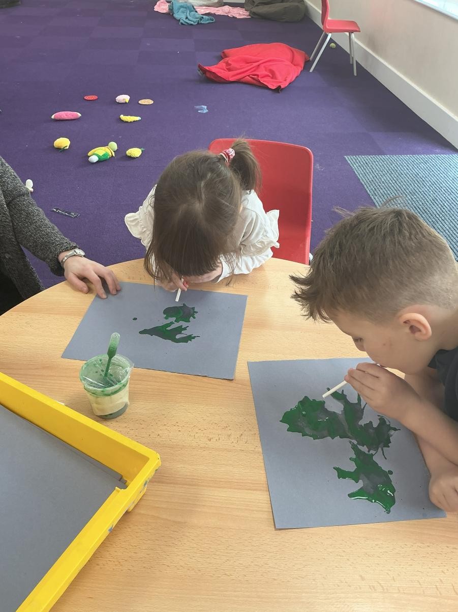 A new sensory story for our last two weeks of term: The Way Back Home, a lovely story that explores how making friends, even on the final frontier, improves all problems. We liked the Martian so much that we made our own alien, using straws and pipettes to blow abstract green shapes which, once we added googly eyes, made some delightfully uncanny extra-terrestrials.