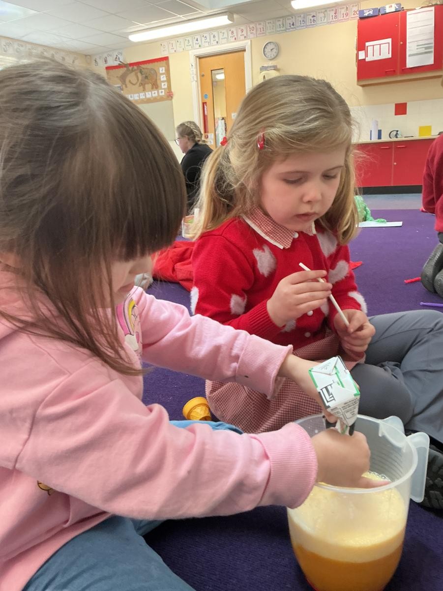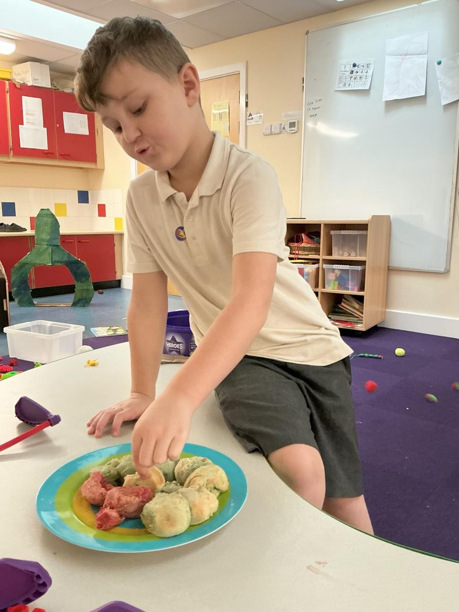 As part of our topic of Growing and Changing we read the sensory story of A Very Hungry Caterpillar. This is possibly our most popular story so far, as all children enjoyed smelling and tasting the fruit of the caterpillar's growth. We also looked at the number of fruit the caterpillar ate in maths, paying close attention to the increasing consumption. With the sun so brilliant, it has also been a lovely opportunity to spend more time in the outdoors, playing with sand and water and also planting chia seeds, whose quick germination will hopefully give us chance to observe plant growth very soon! The most adventurous eaters in Iris class also explored some new food in relation to Eid being celebrated, tasting mango lassi and spiced rice